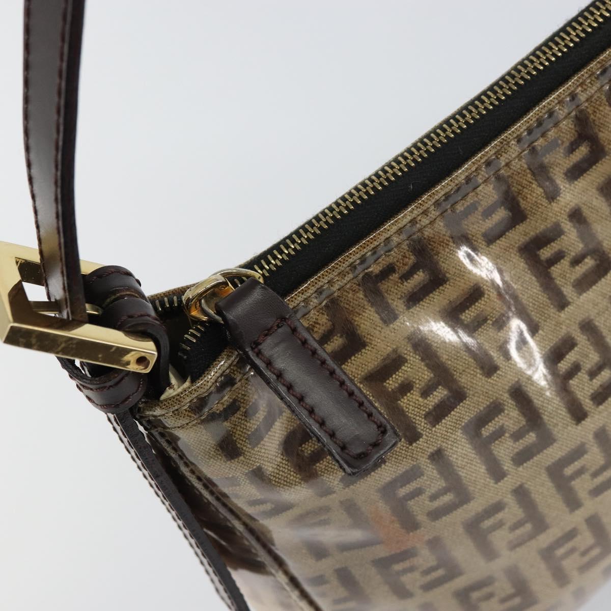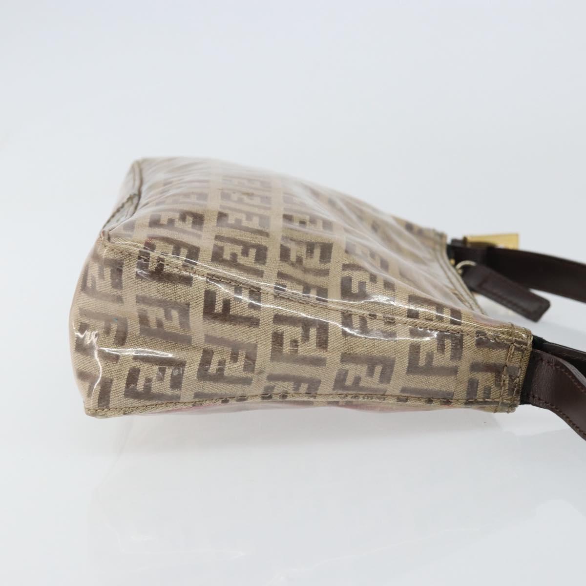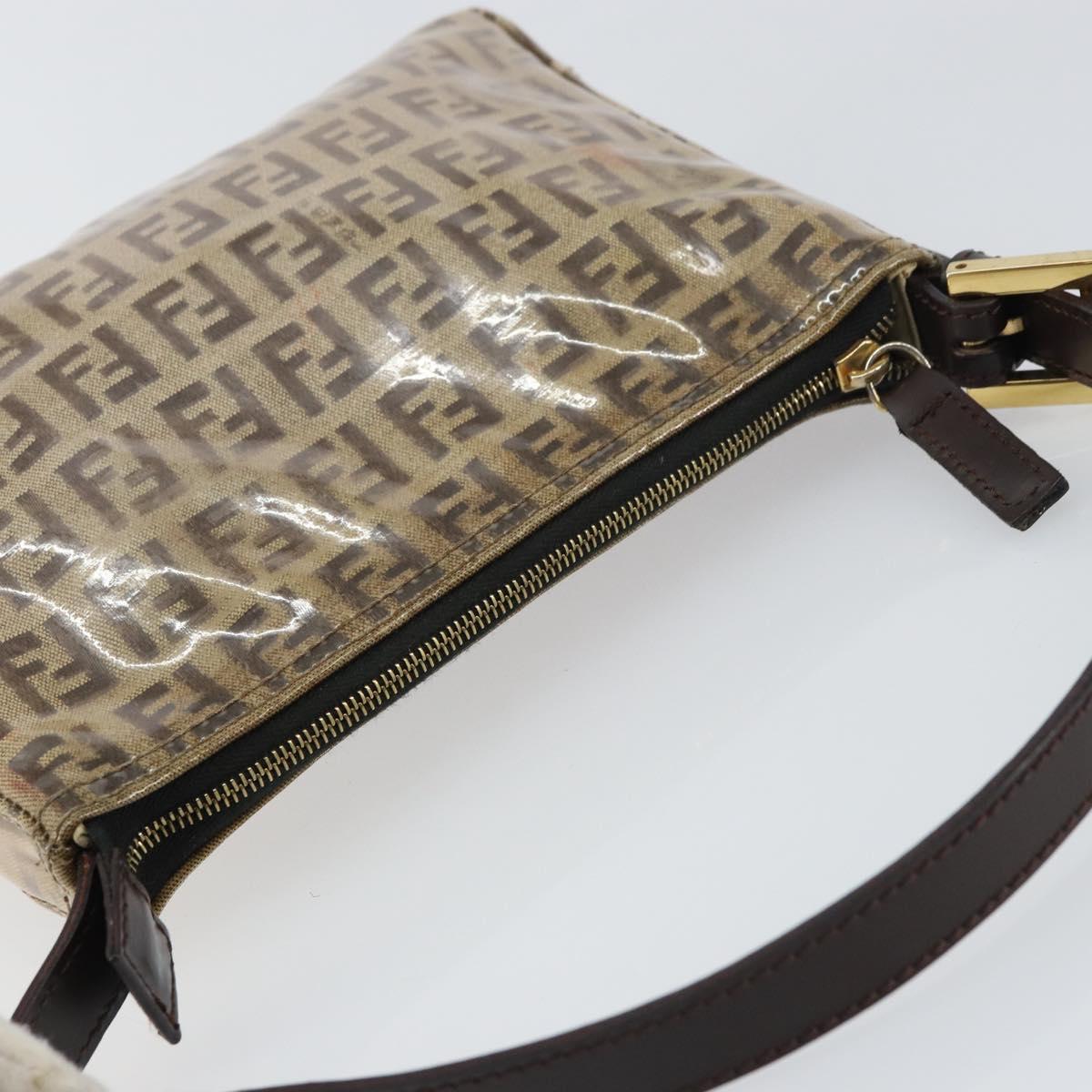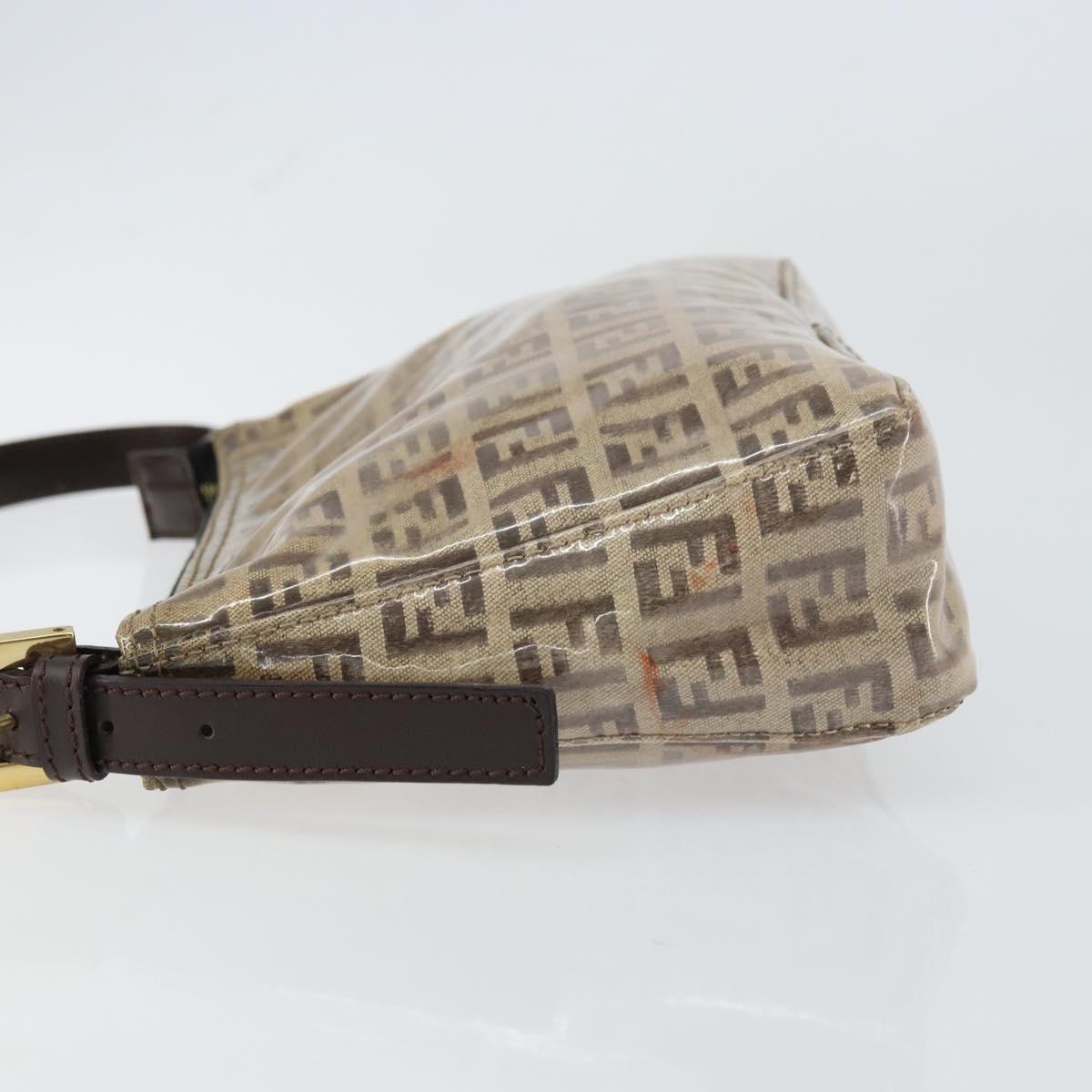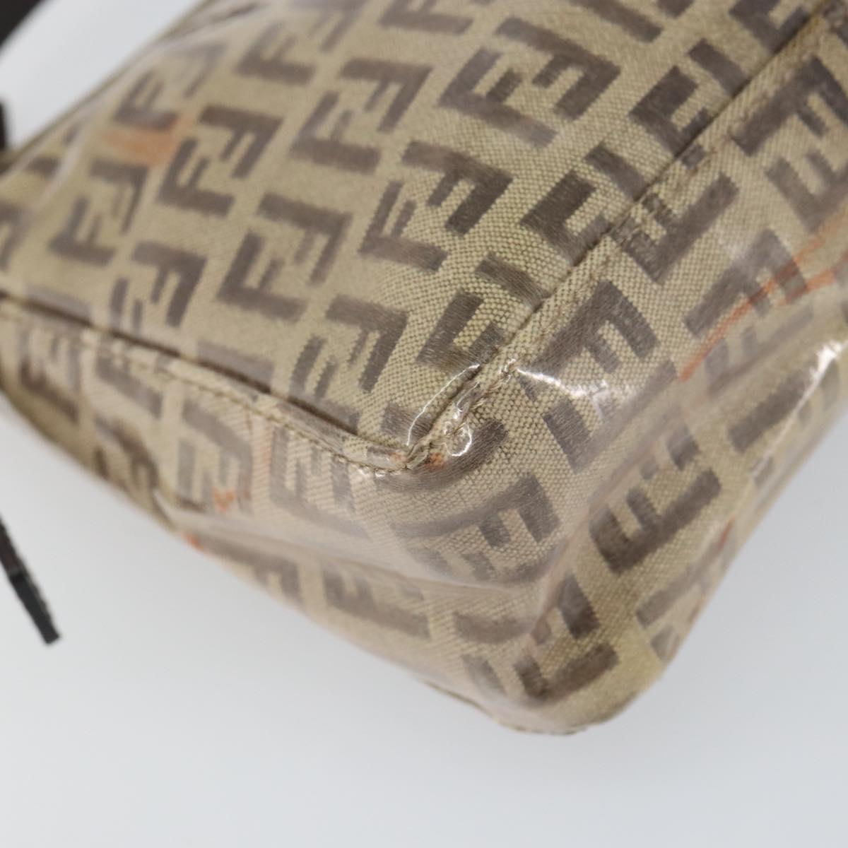FENDI Zucchino Canvas Pouch Enamel Beige Gold Auth 156480