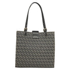 FENDI Zucchino Canvas Tote Bag Navy Silver Auth BA886V