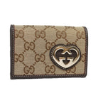 GUCCI GG Canvas Lovely Card Case Beige Gold 245730 Auth am7000V