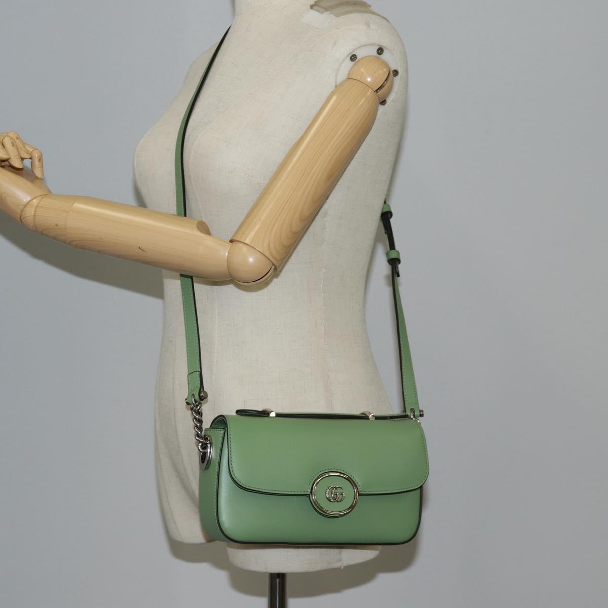 GUCCI Petit Shoulder Bag Leather Green Silver 739722 Auth 120173SM