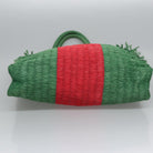 GUCCI Web Sherry Line Hand Bag Raffia Red Green 524810 Auth EC781V