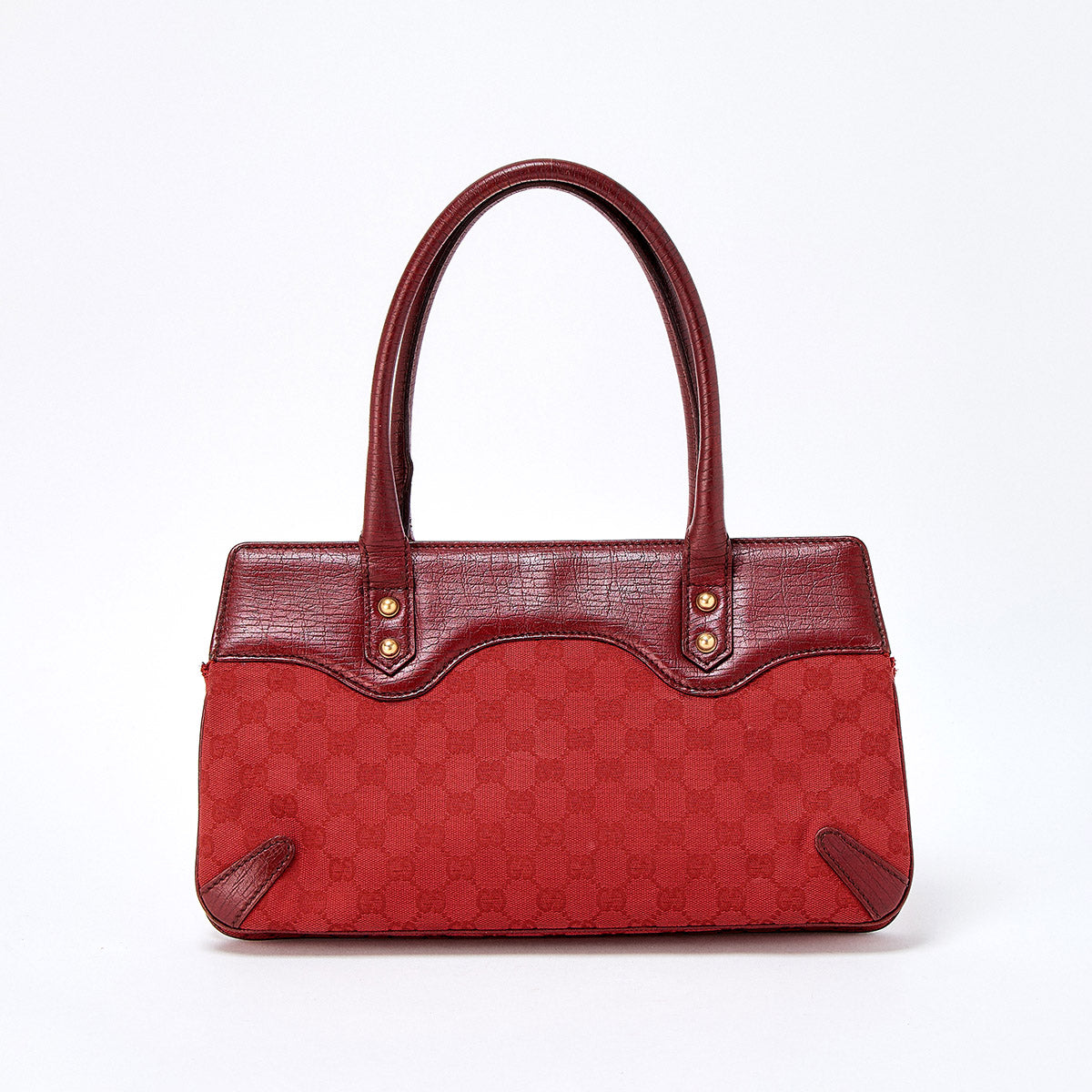 GUCCI Horsebit GG Canvas Shoulder Bag Red Gold Canvas Auth