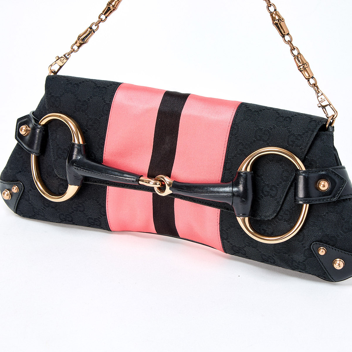 GUCCI Horsebit Shoulder Bag Black Pink Gold Canvas Auth