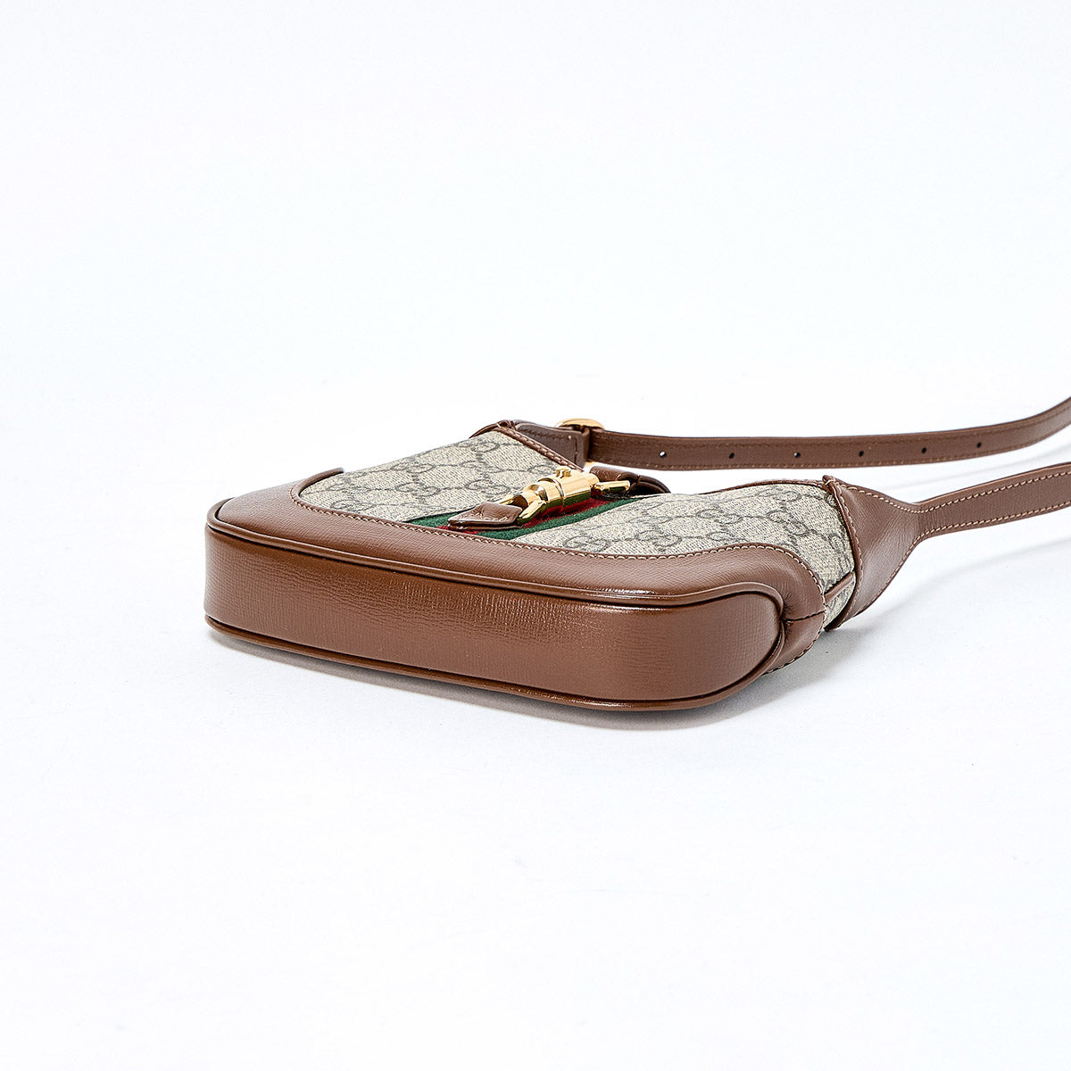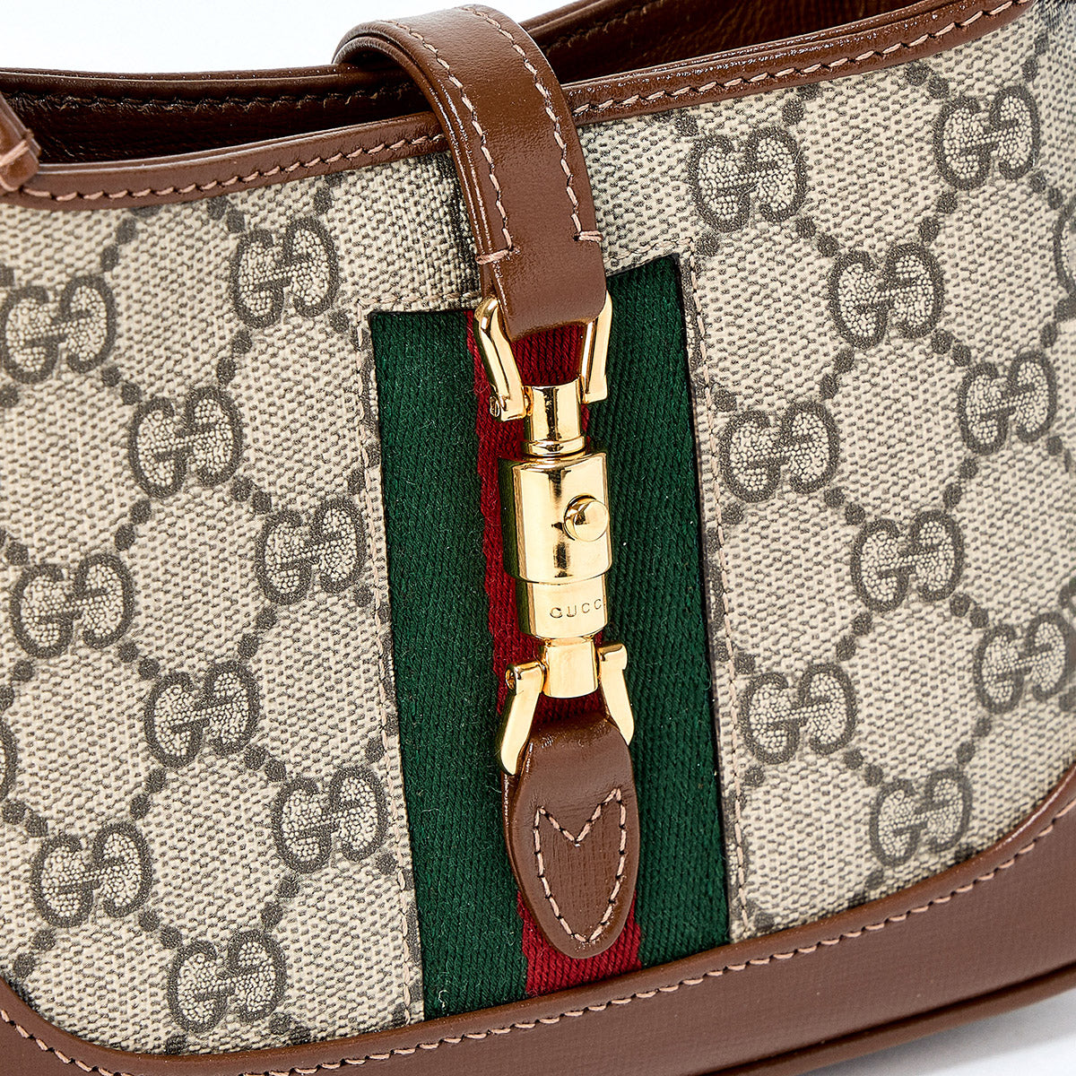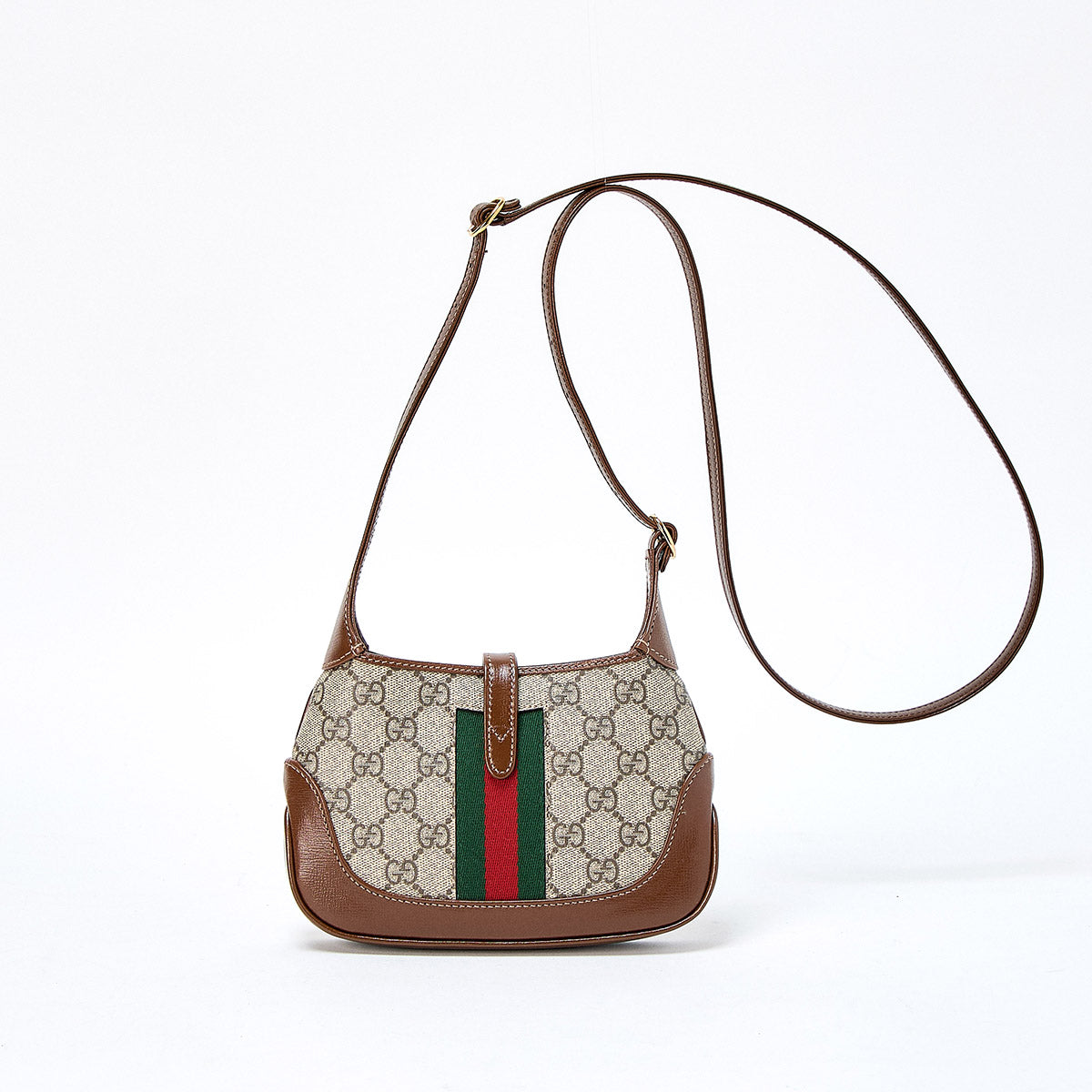GUCCI Jackie Shoulder Bag Brown Green Red Gold Canvas Auth