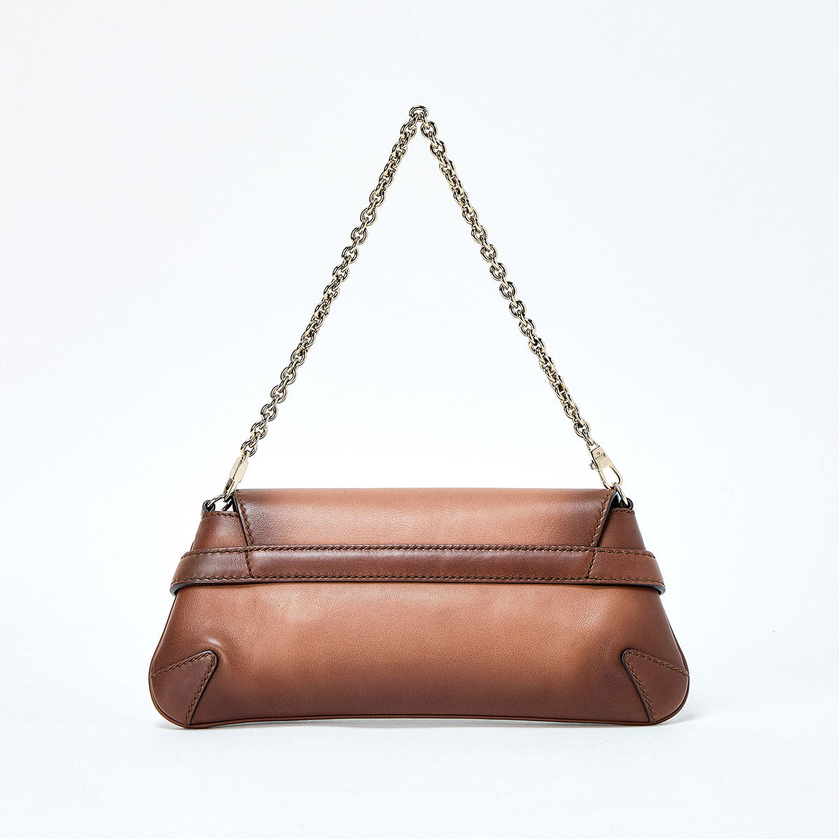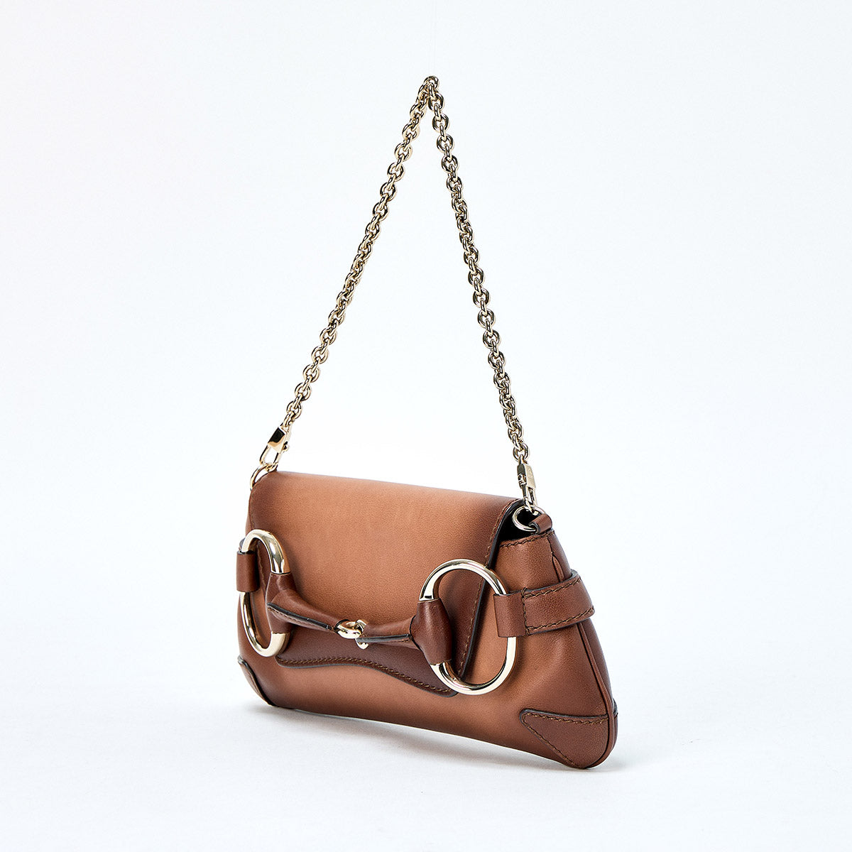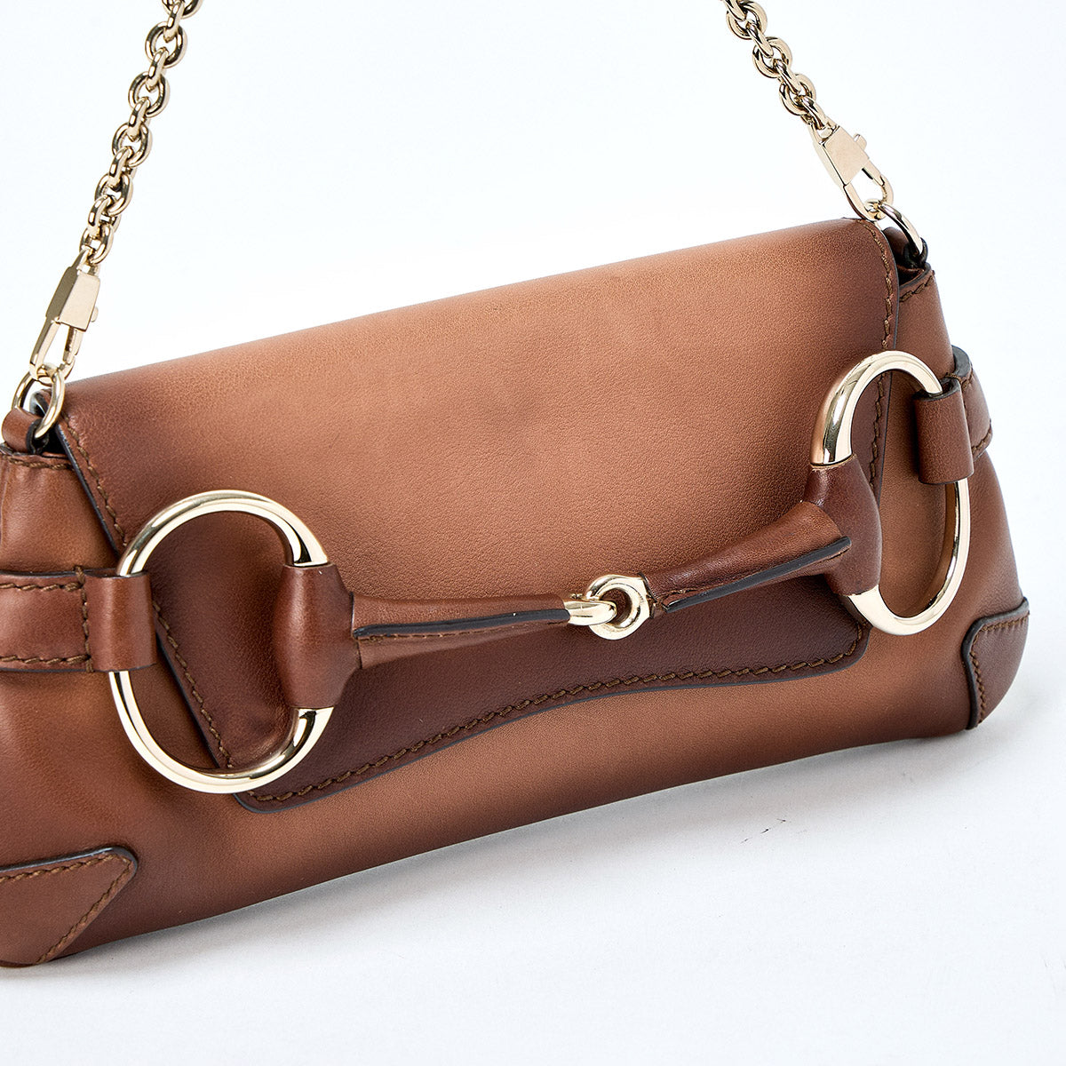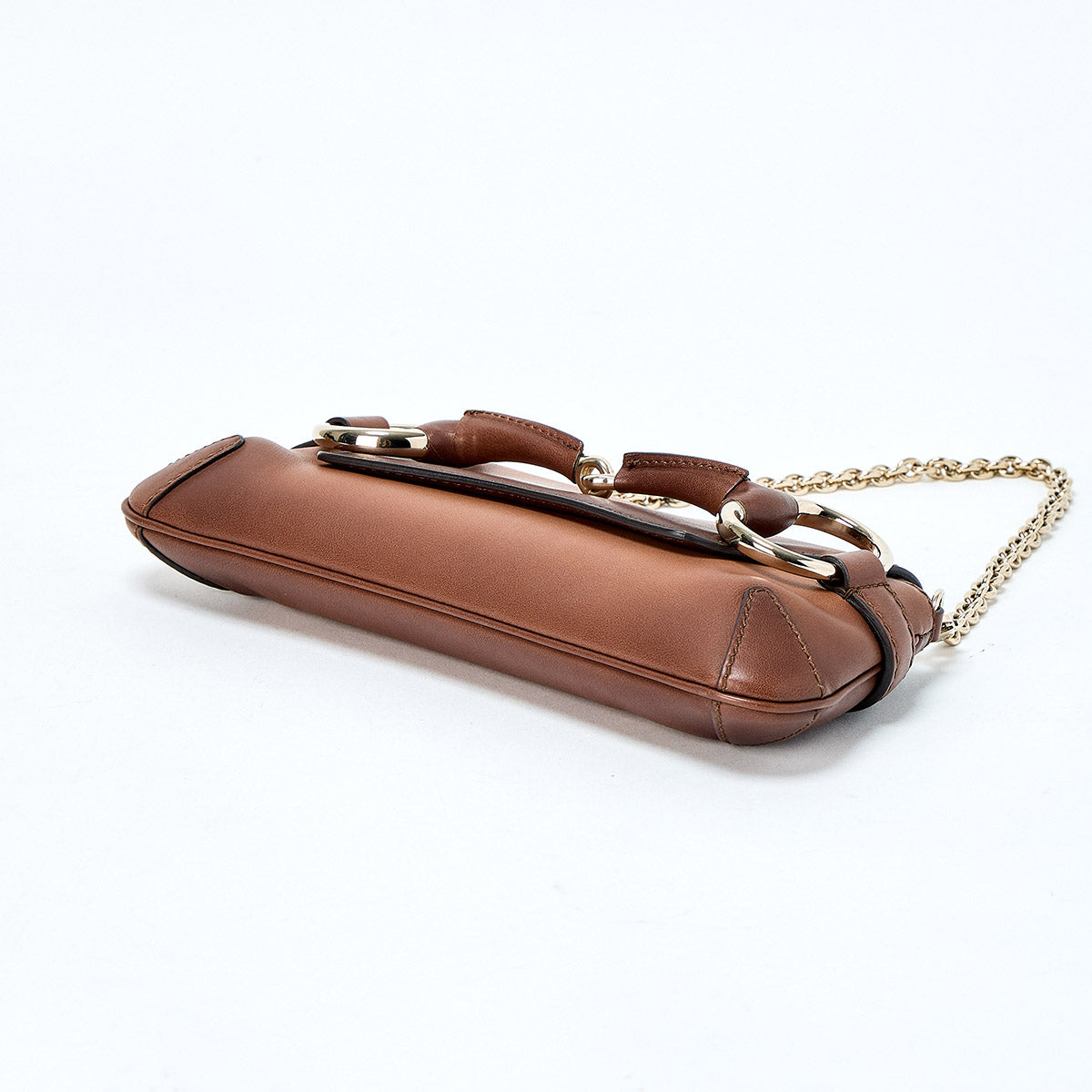 GUCCI Horsebit Shoulder Bag Brown Gold Leather Auth