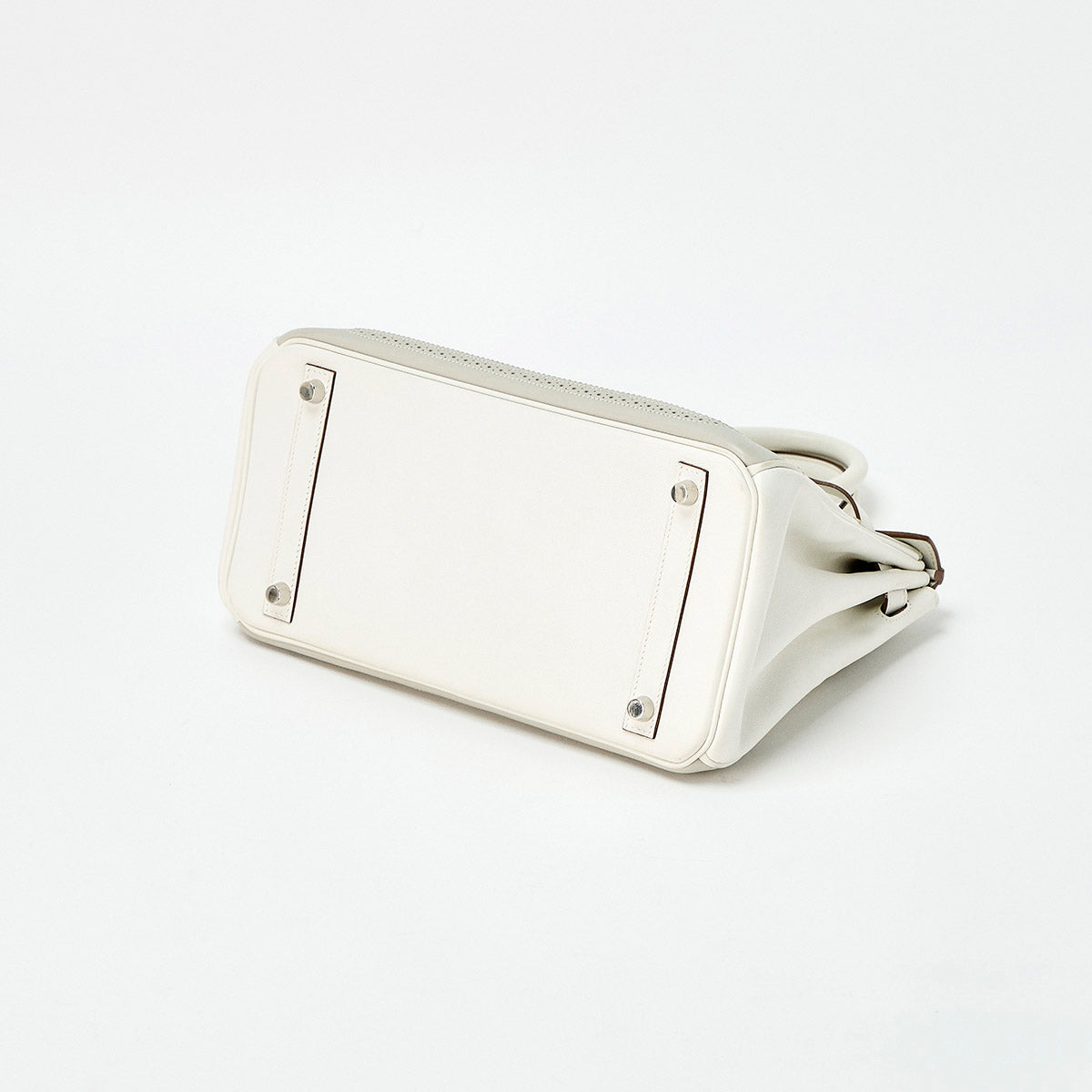 HERMES Birkin Gillies 30 2013 □Q Hand Bag Grispar Blanc Silver Swift Leather Auth
