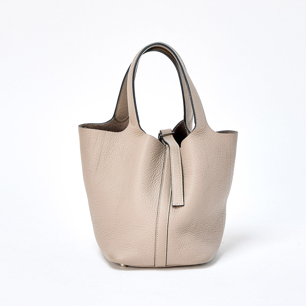 HERMES Picotin 18 PM 2003 □G Hand Bag Tourtiere Grey Silver Taurillon Clemence Auth