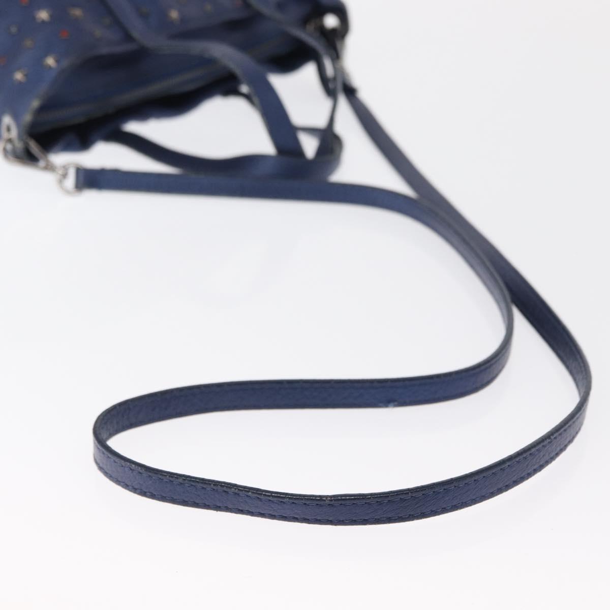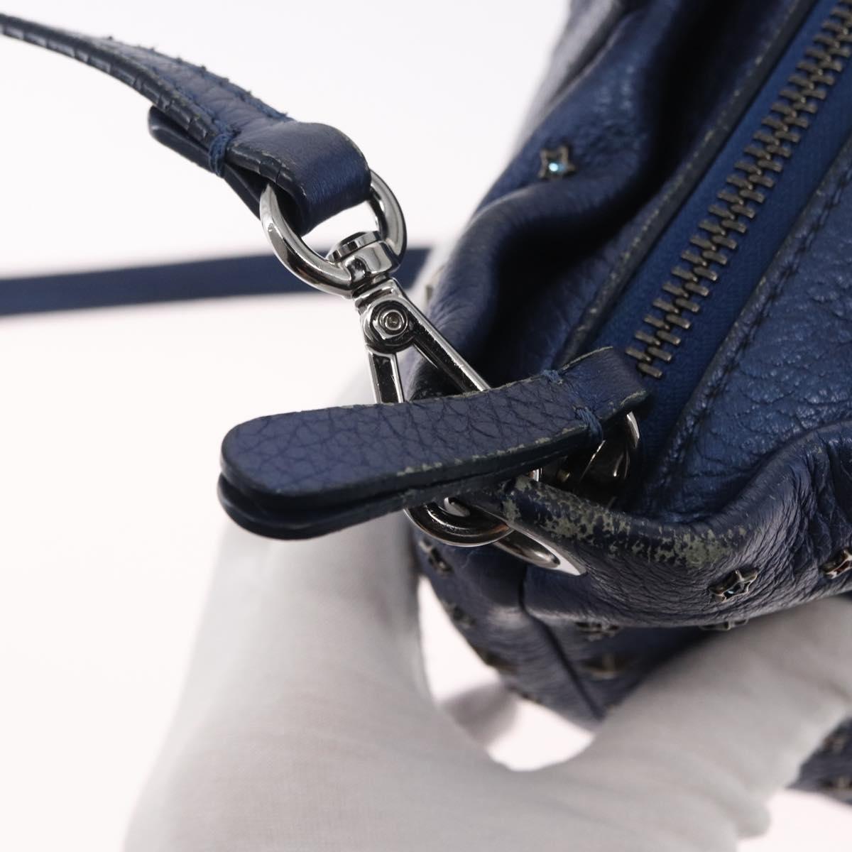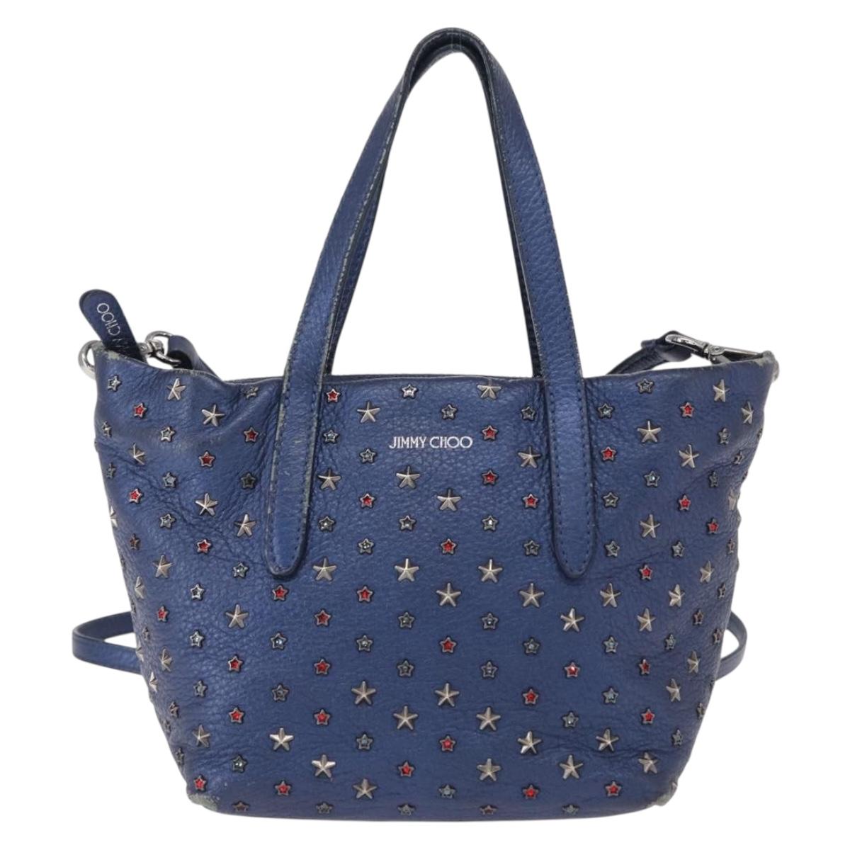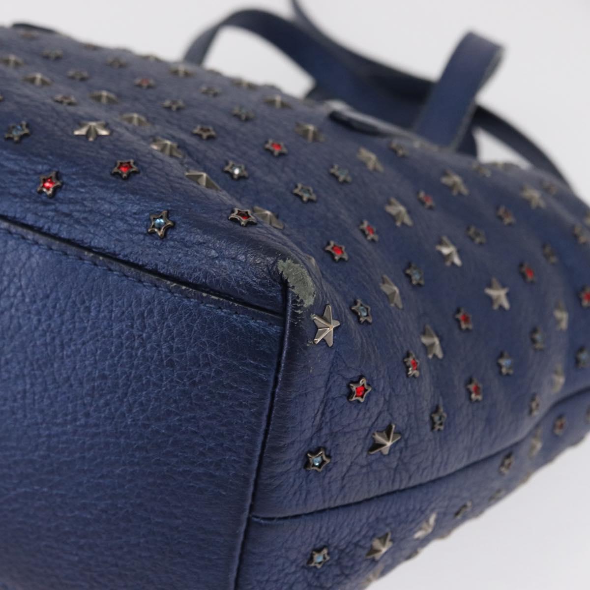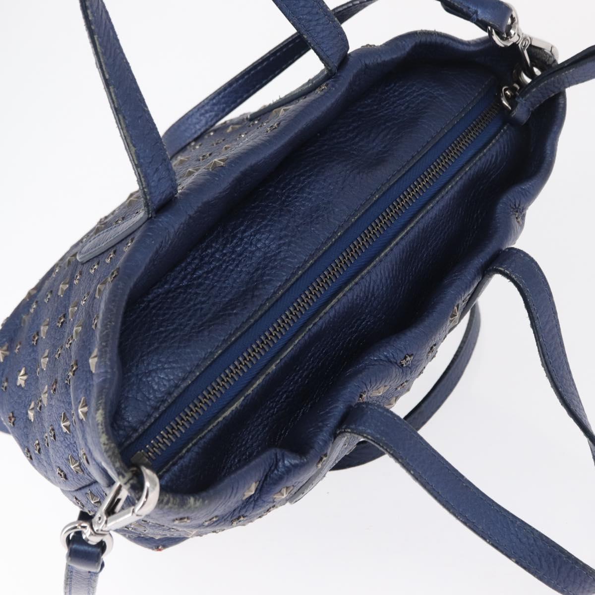 Jimmy Choo Studs Hand Bag Leather 2way Blue Silver Auth 164105