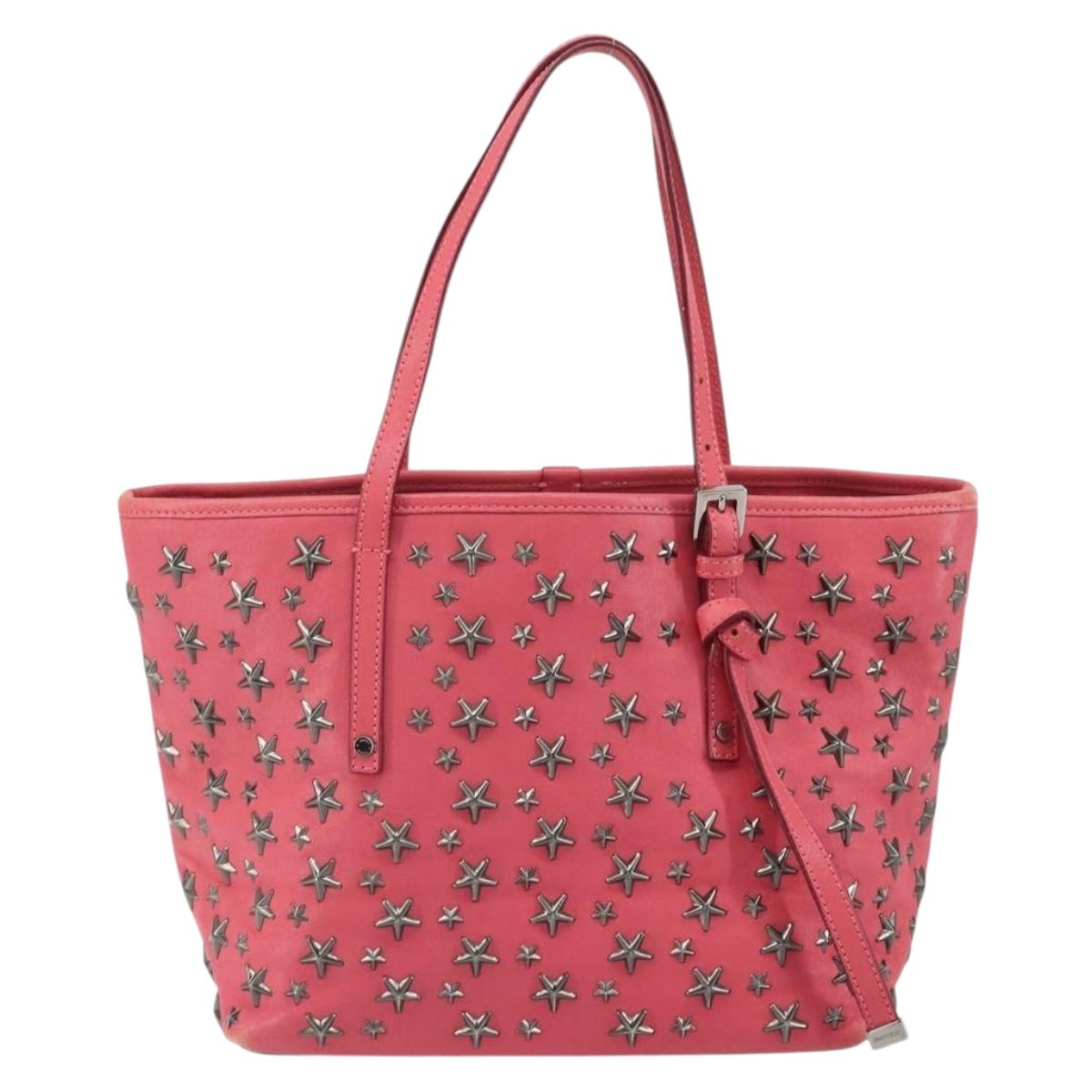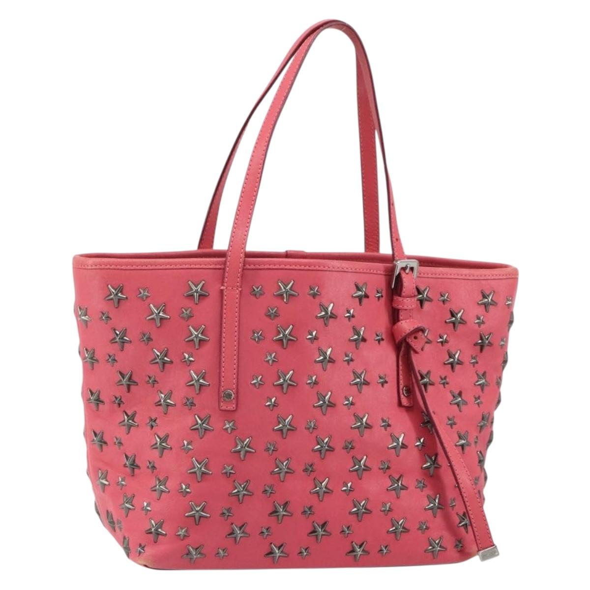 Jimmy Choo Sasha S Tote Bag Leather Pink Silver Auth BA9570