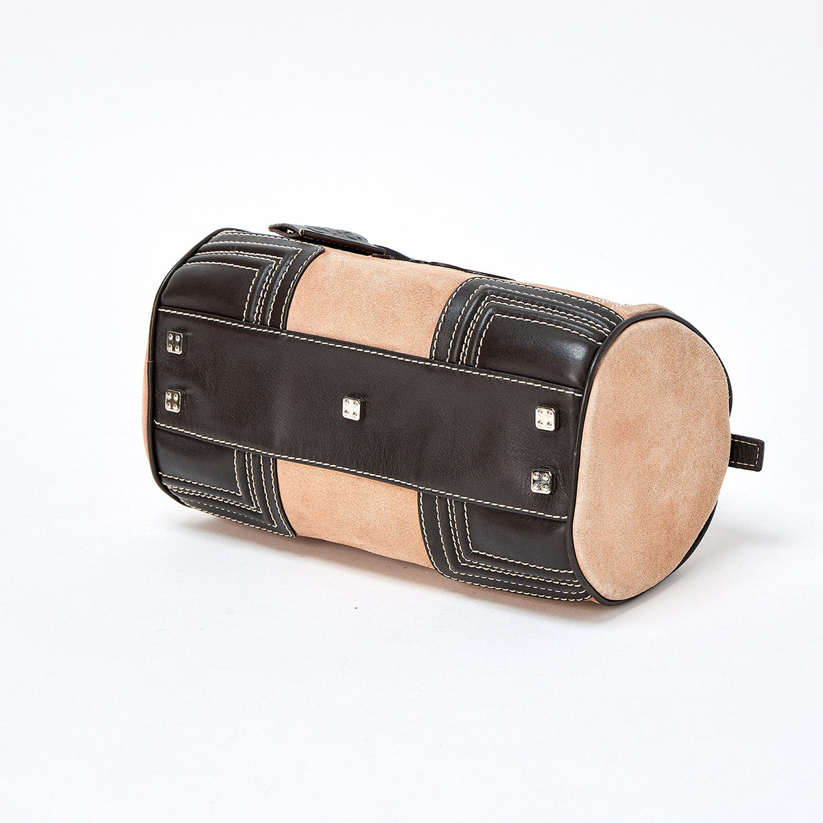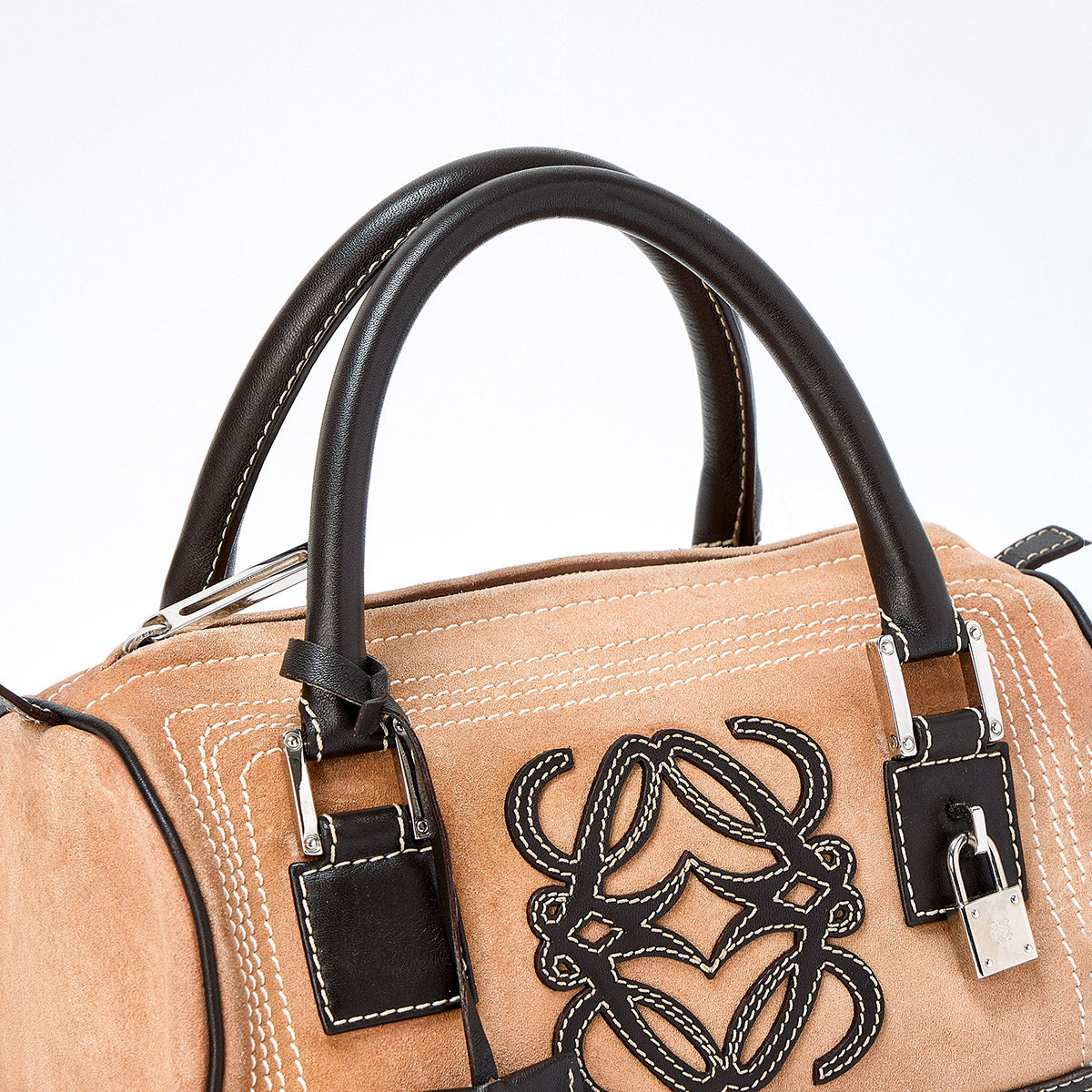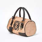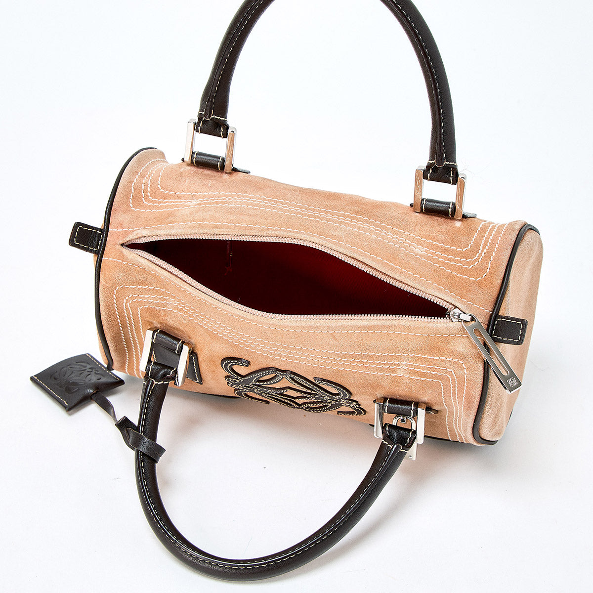 LOEWE Amazona Hand Bag Beige Brown Silver Suede Auth