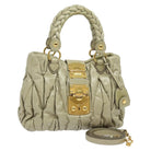 Miu Miu Matelasse Hand Bag Leather 2way Beige Gold Auth 125046V