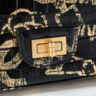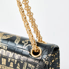 CHANEL 2.55 Graffiti 2019 Shoulder Bag Black Gold Gold Crocodile Embossed Leather Auth