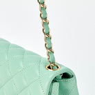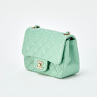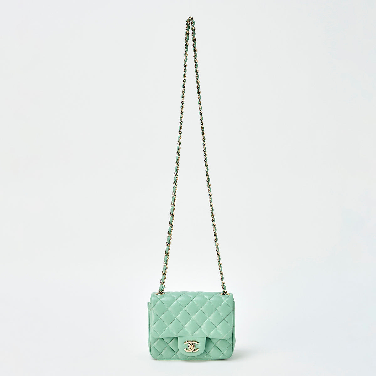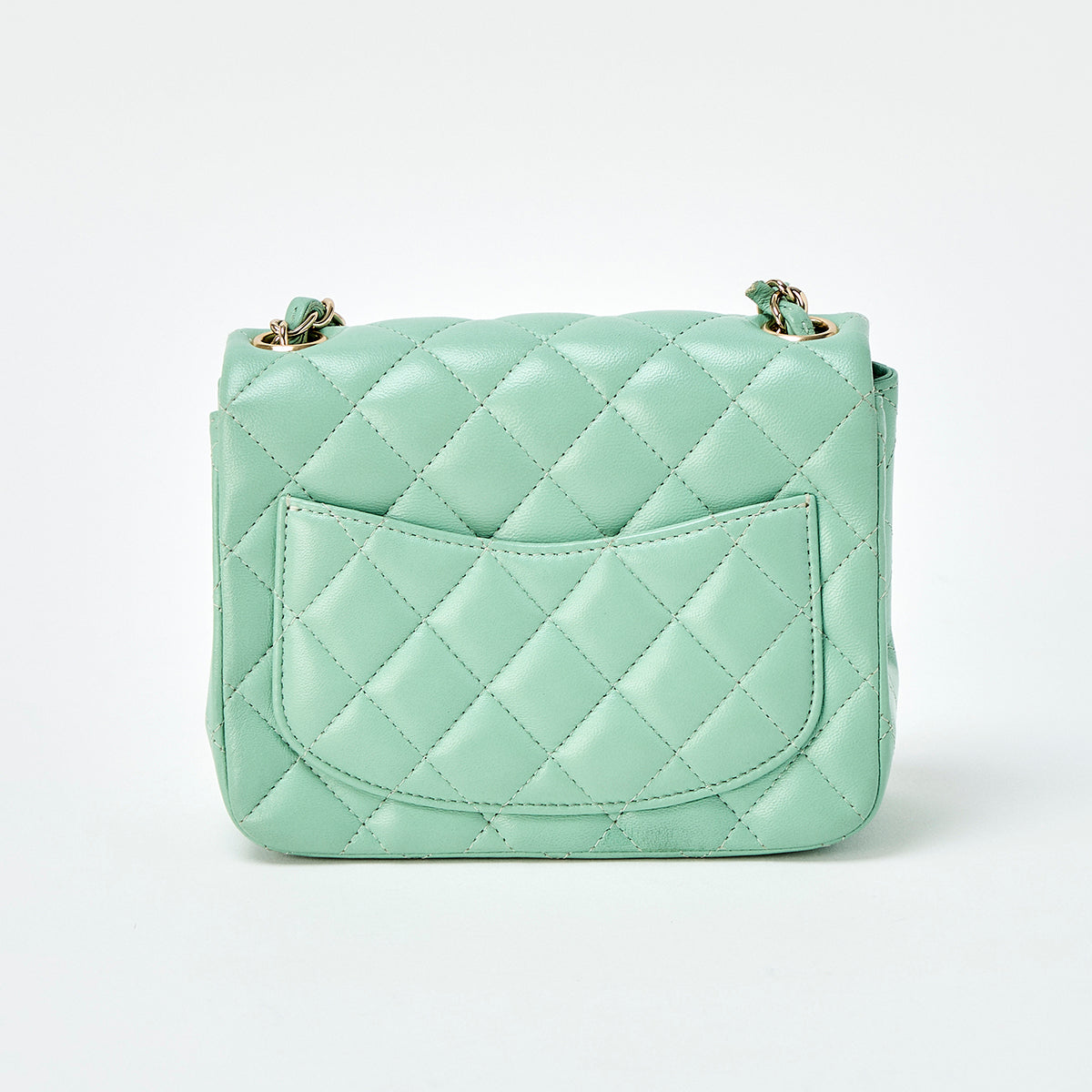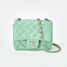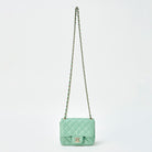 CHANEL Mini Matelasse Single Flap Single Chain Shoulder Bag 2021 Mint Green Gold Lamb Skin Auth