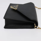 PRADA Chain Shoulder Bag Safiano leather Gold Black Auth 91020SV