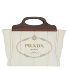 PRADA Canapalage Hand Bag Canvas White Silver 1BG350 Auth 101308SV