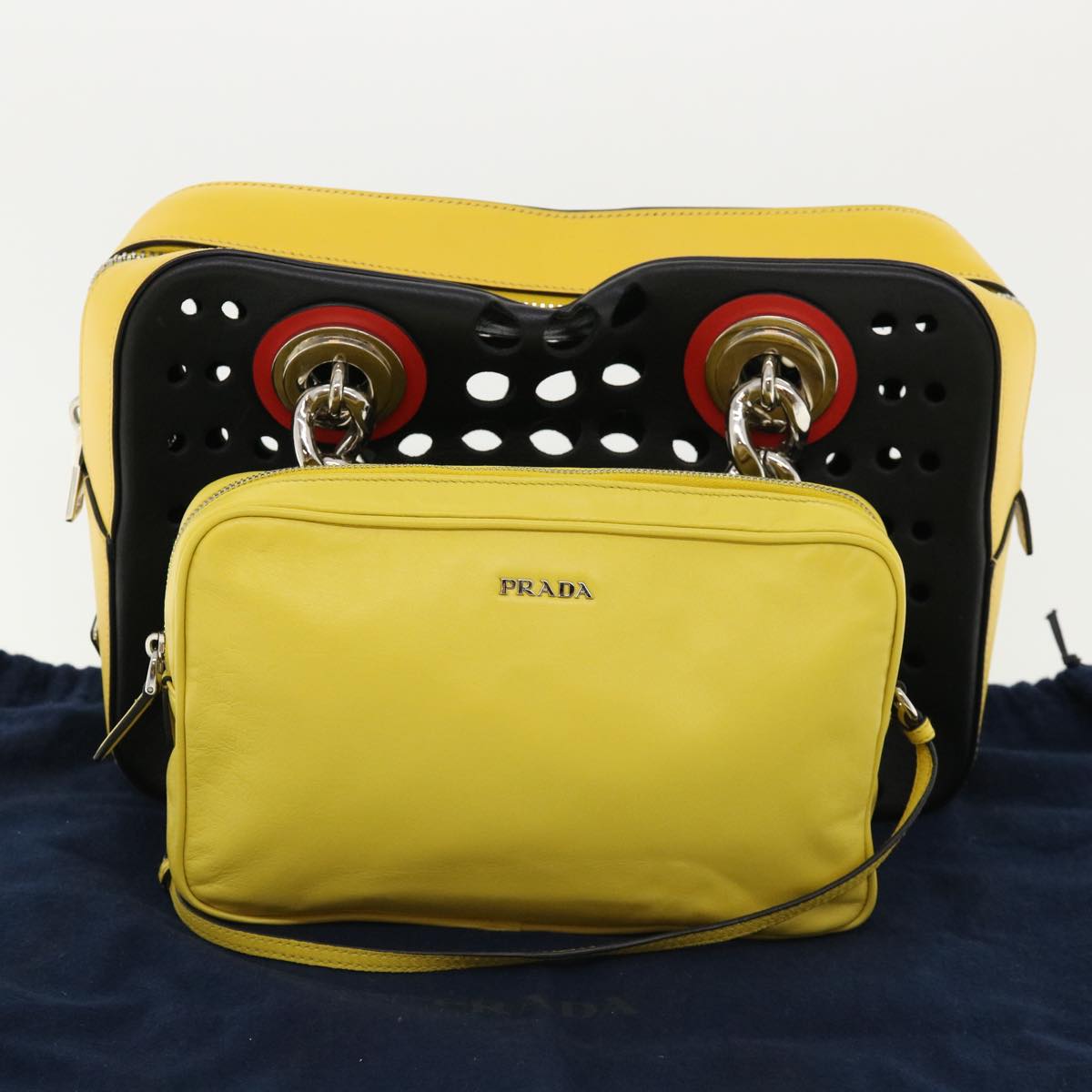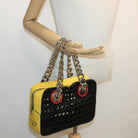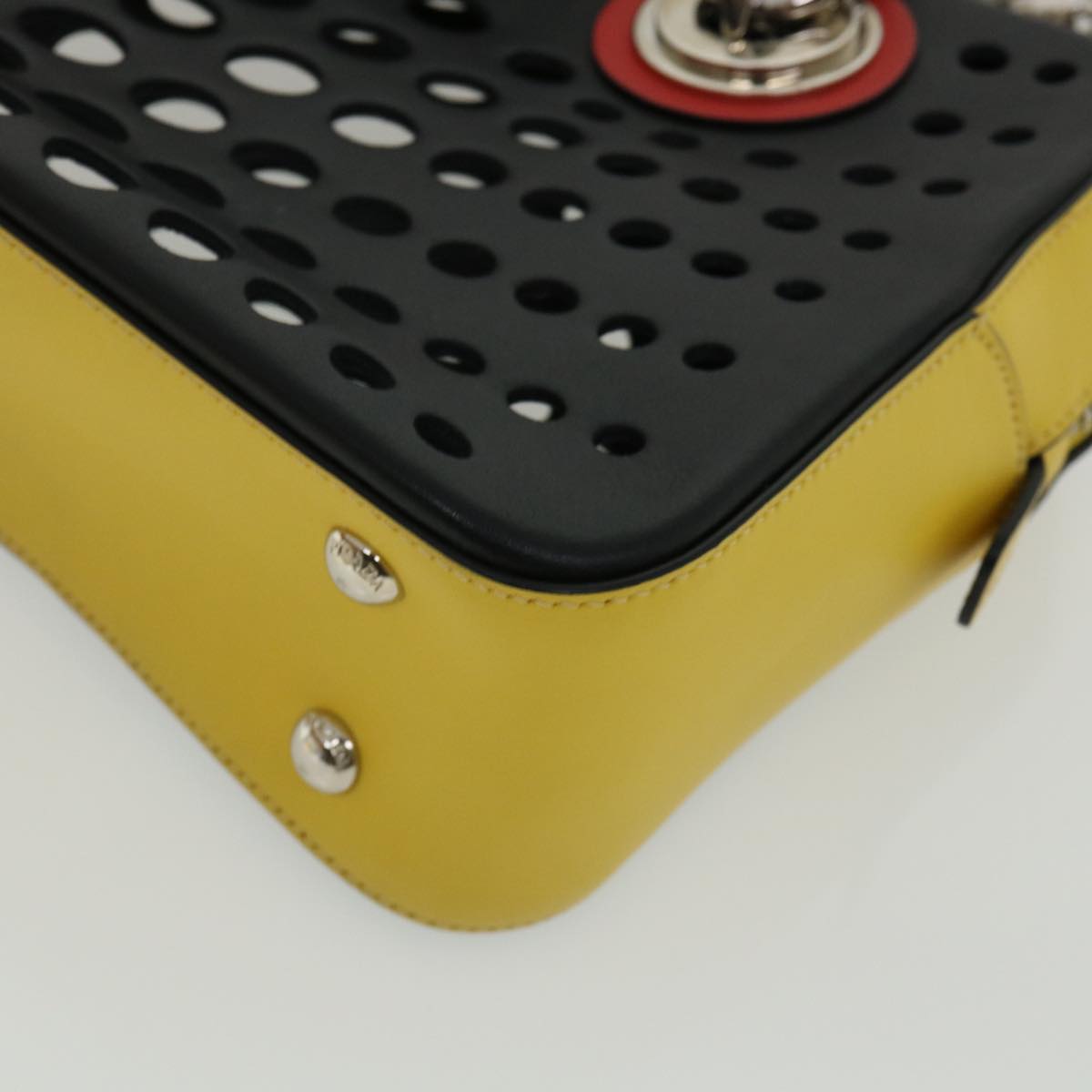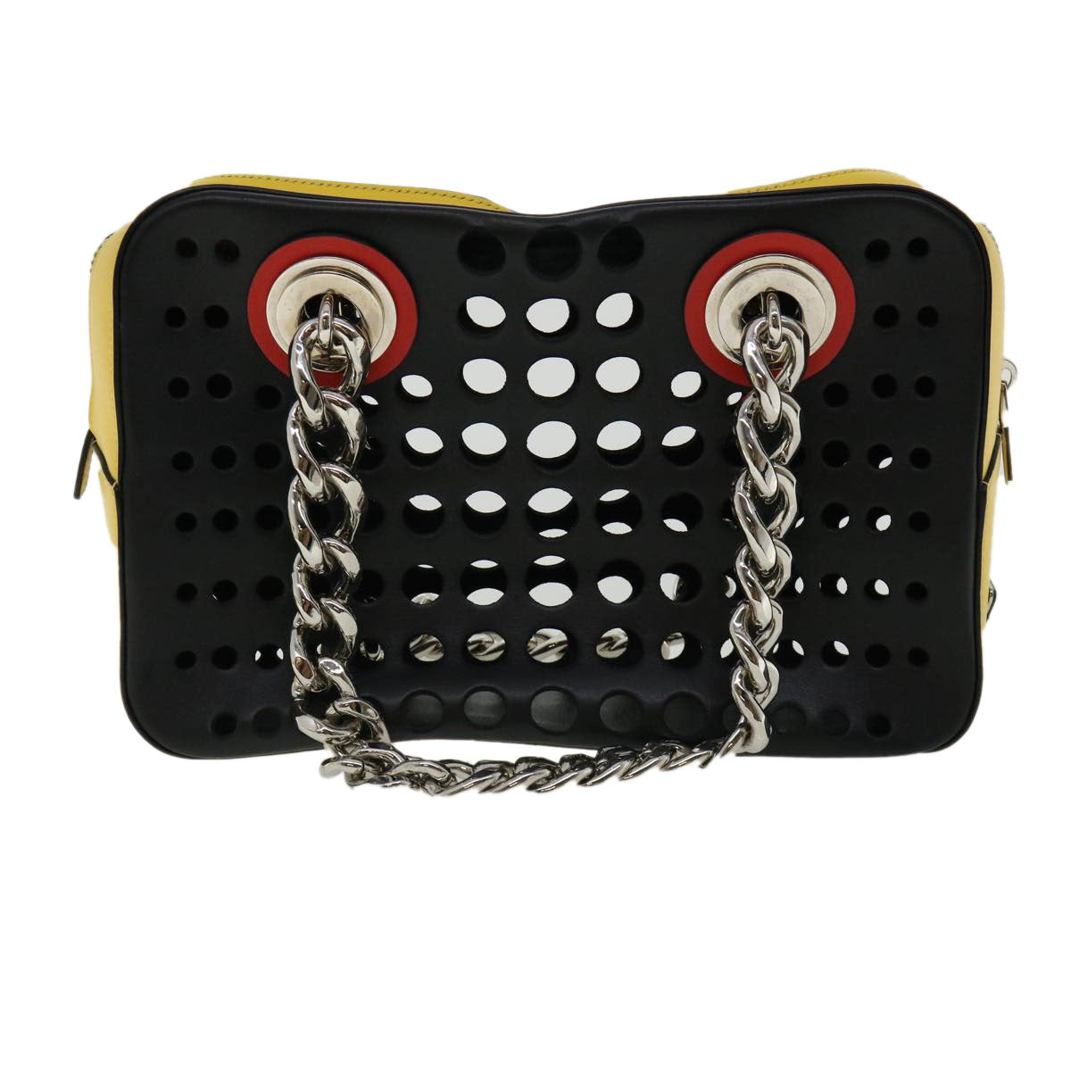 PRADA Chain Shoulder Bag Punching Leather Tricolor Black 15EP127 Auth 32293AV