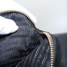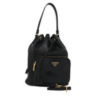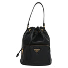 PRADA Hand Bag Leather 2way Black Gold Auth 106451AV
