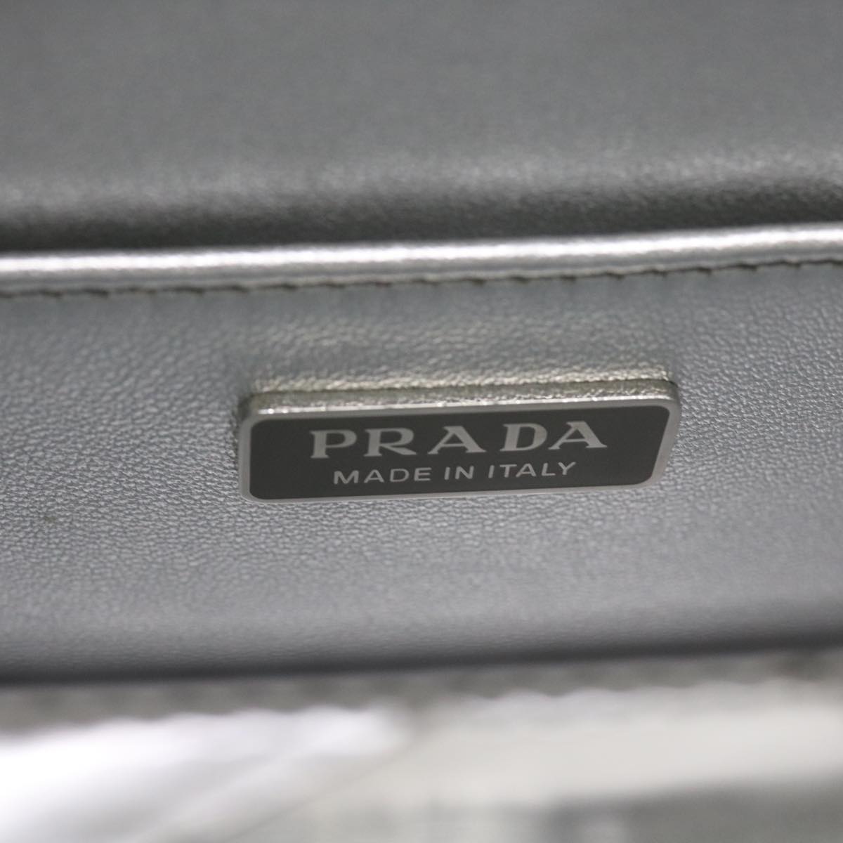 PRADA Hand Bag Metallic leather Silver Auth 59813SV