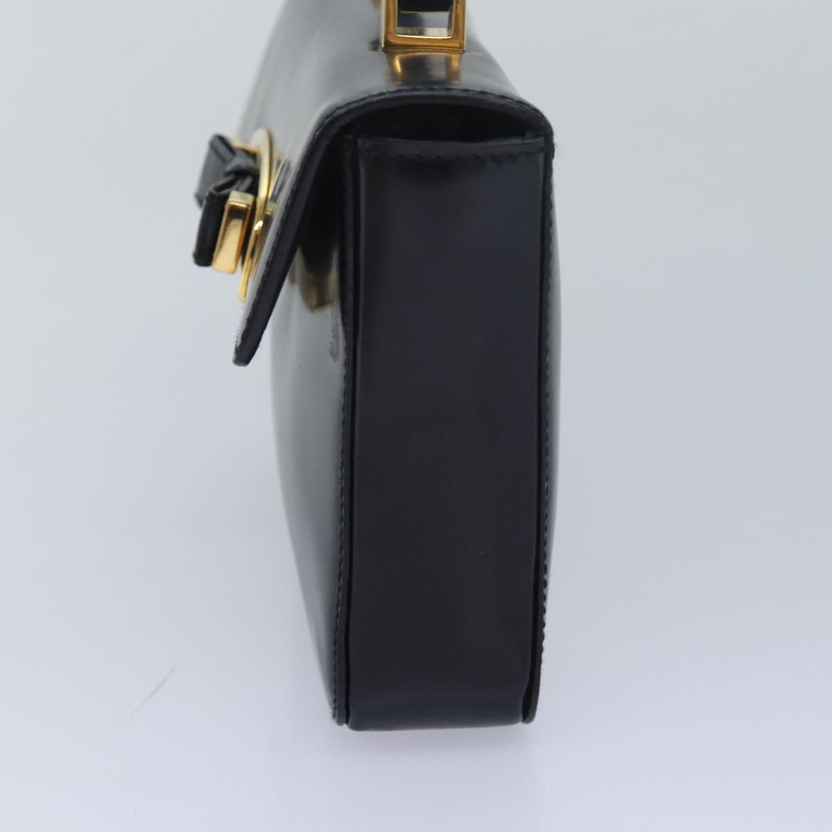PRADA Ribbon Hand Bag Patent leather Black Auth am6589AV