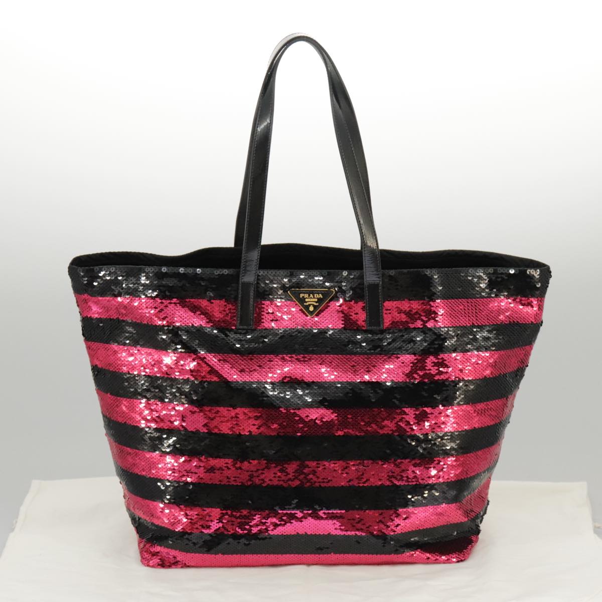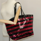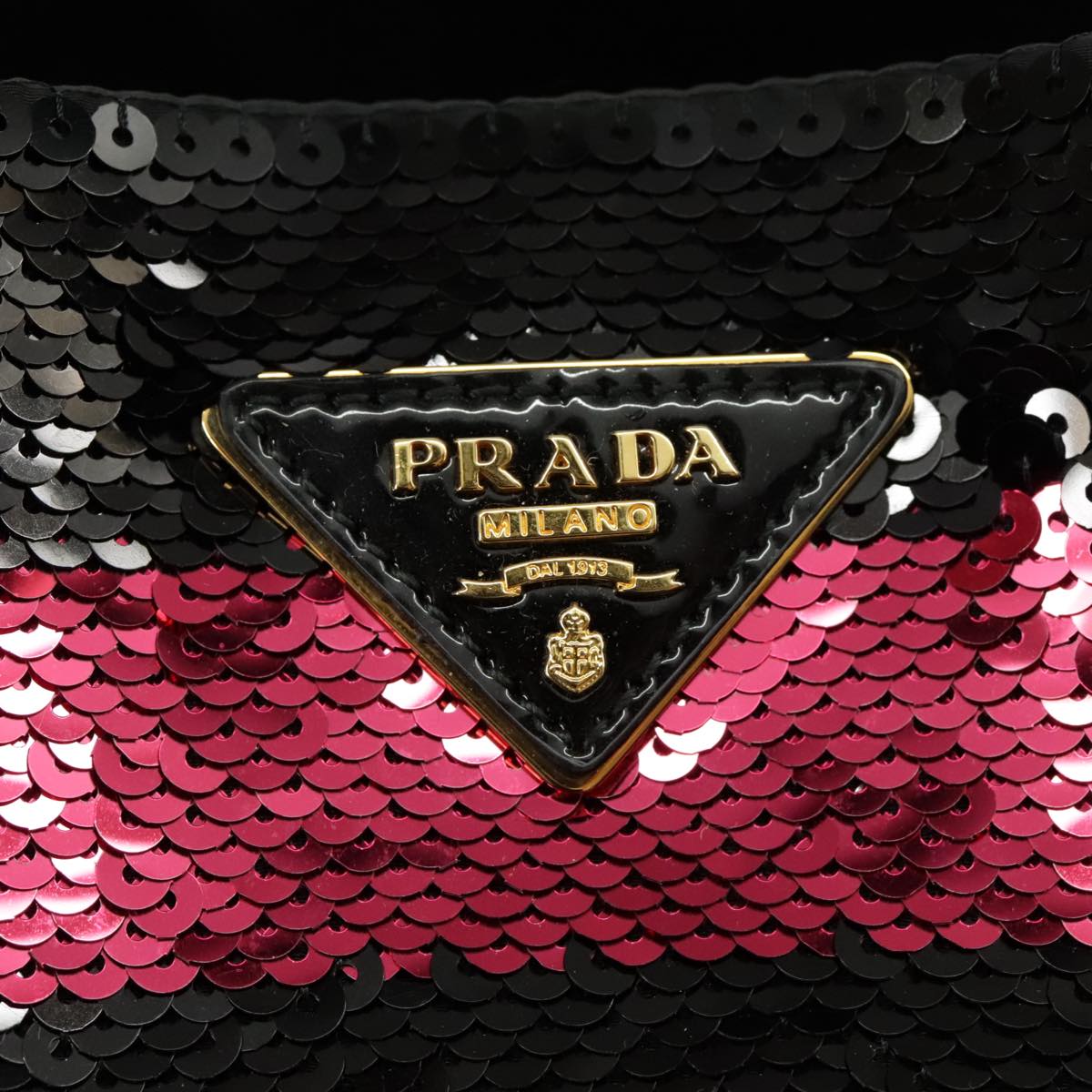 PRADA Sequin Tote Bag Nylon Black Red Auth 98375A