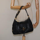 PRADA Shoulder Bag Nylon Leather Black Gold Auth 117514M