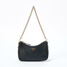 PRADA Triangle Shoulder Bag 1BH174 Black Gold Saffiano Auth