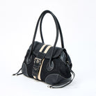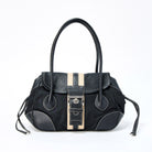 PRADA Triangle Shoulder Bag Black Beige Silver Tessuto Auth