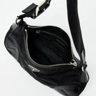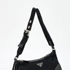 PRADA Triangle Shoulder Bag Black Silver Tessuto Auth