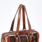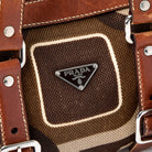 PRADA Triangle Shoulder Bag Brown Silver Canvas Leather Auth