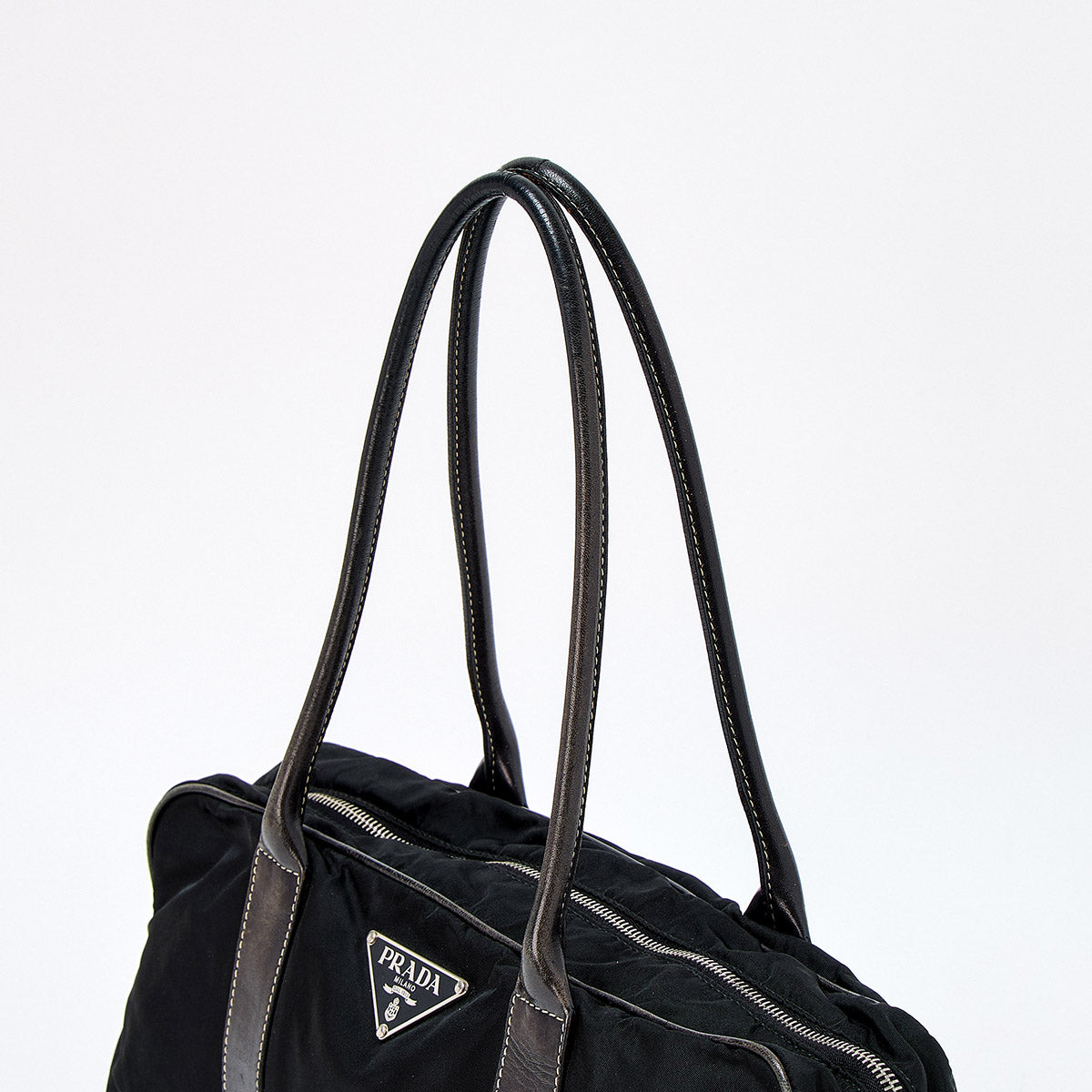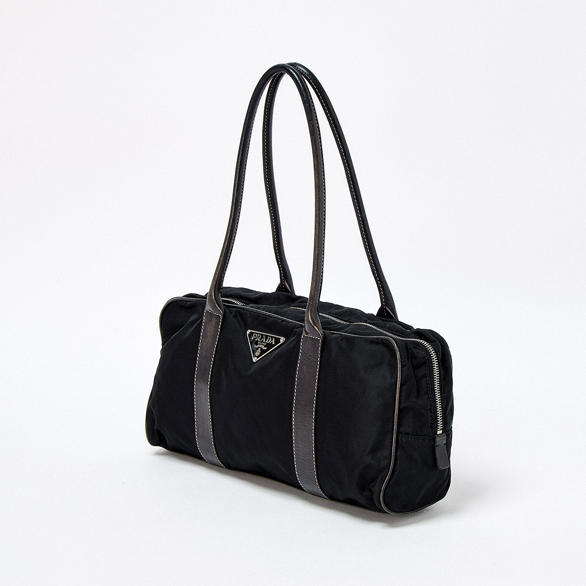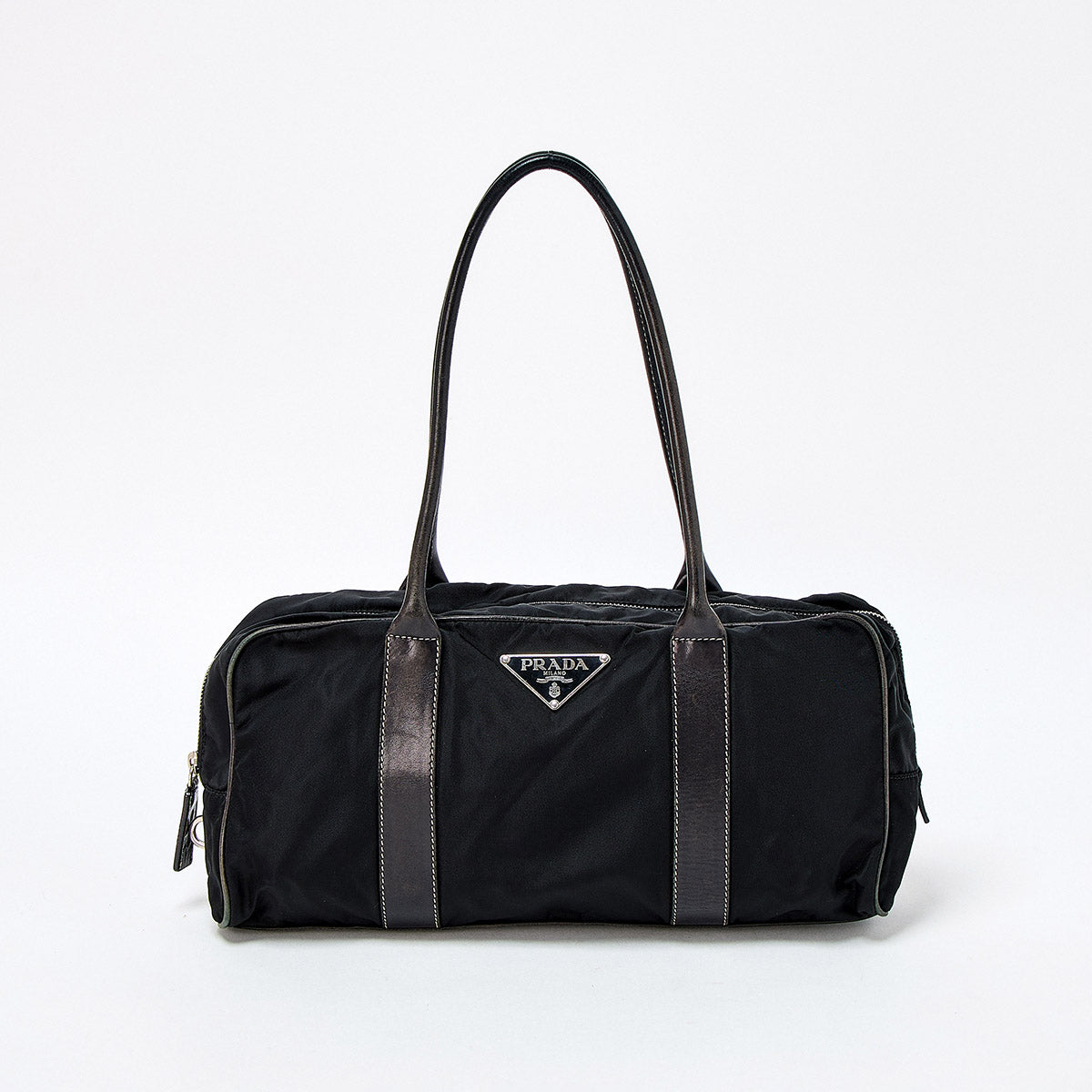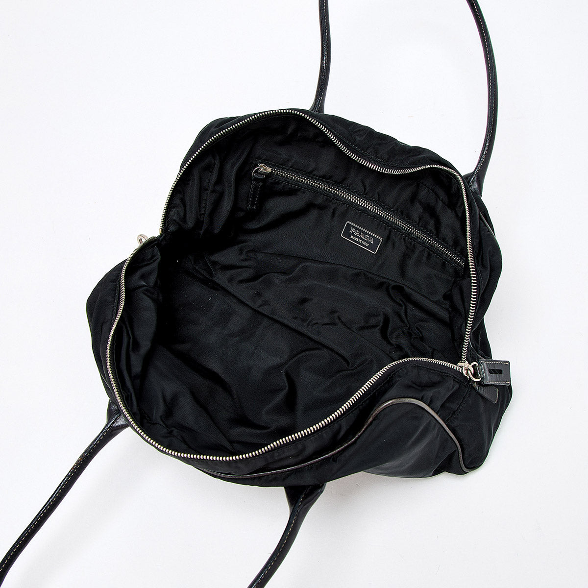 PRADA RE-NYLON Hand Bag Black Silver Tessuto Auth