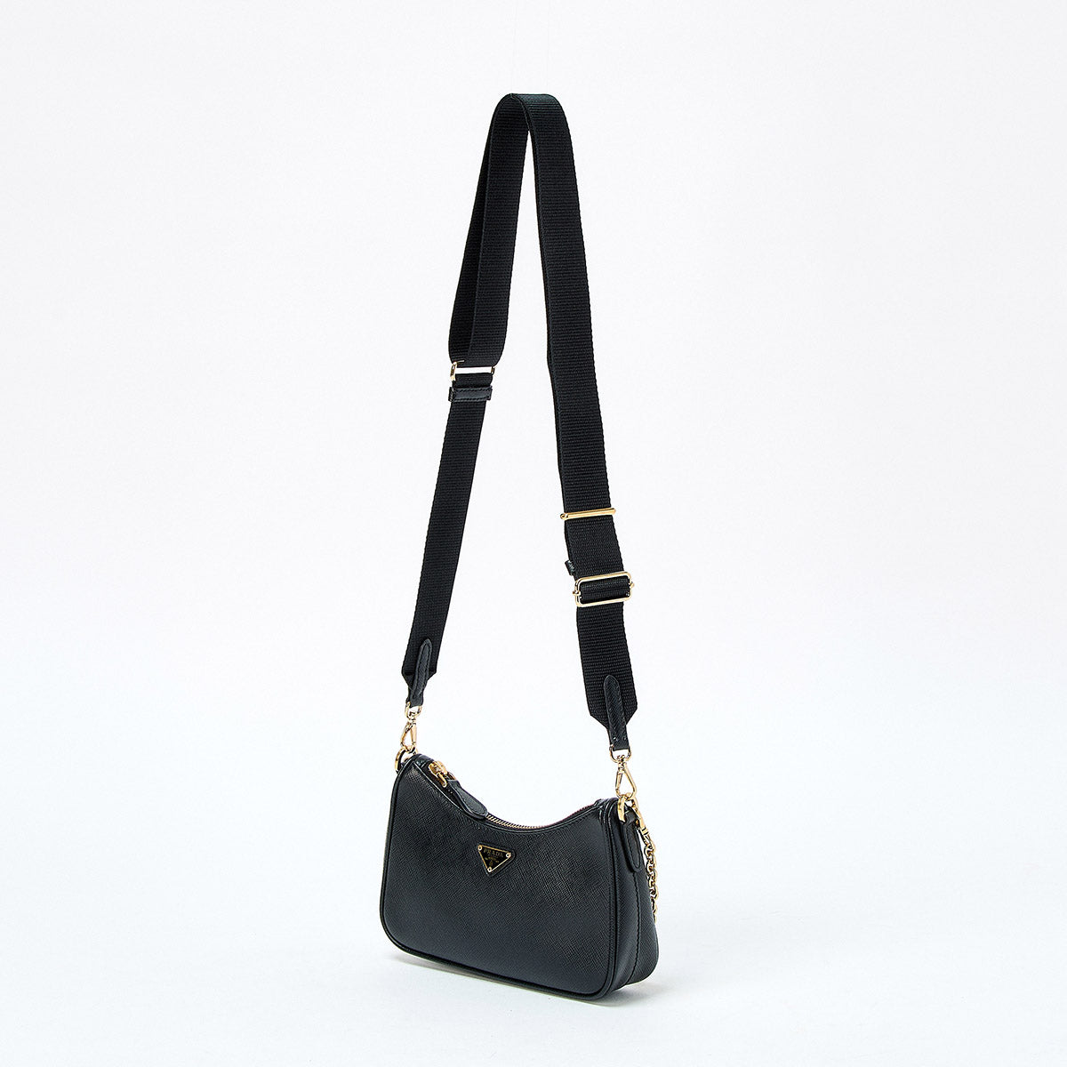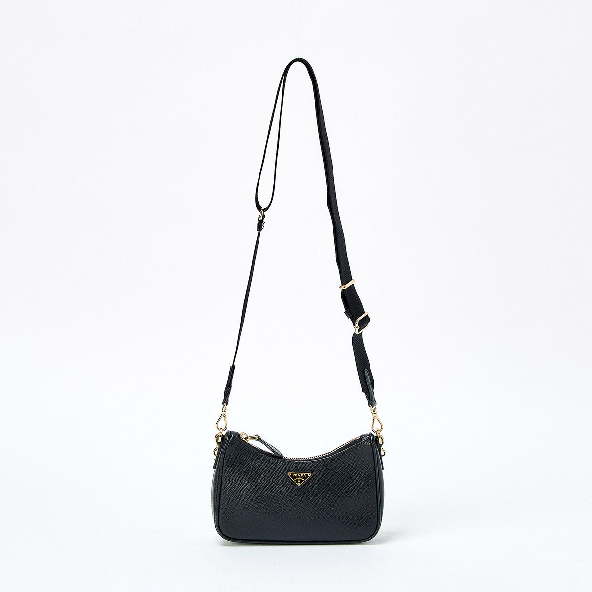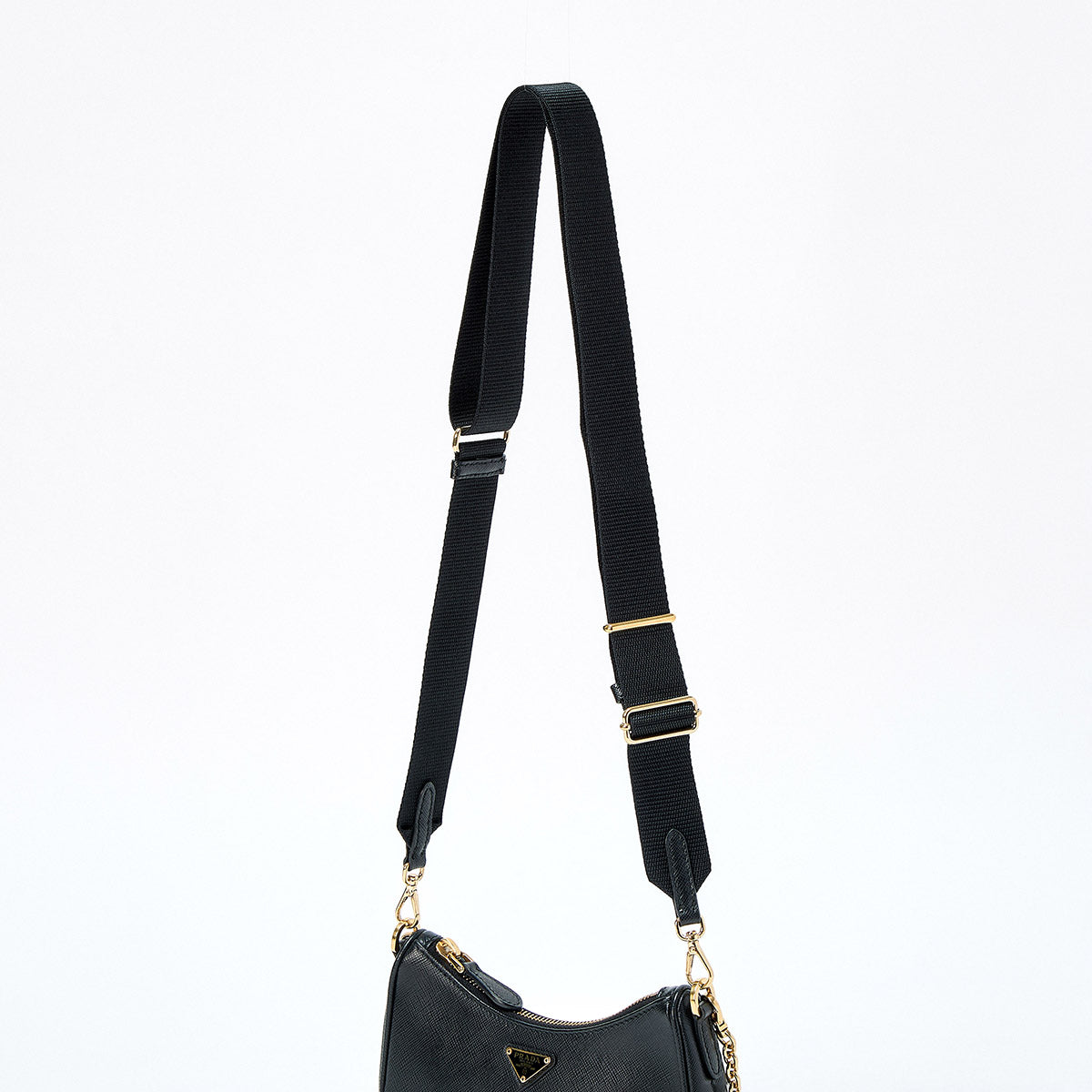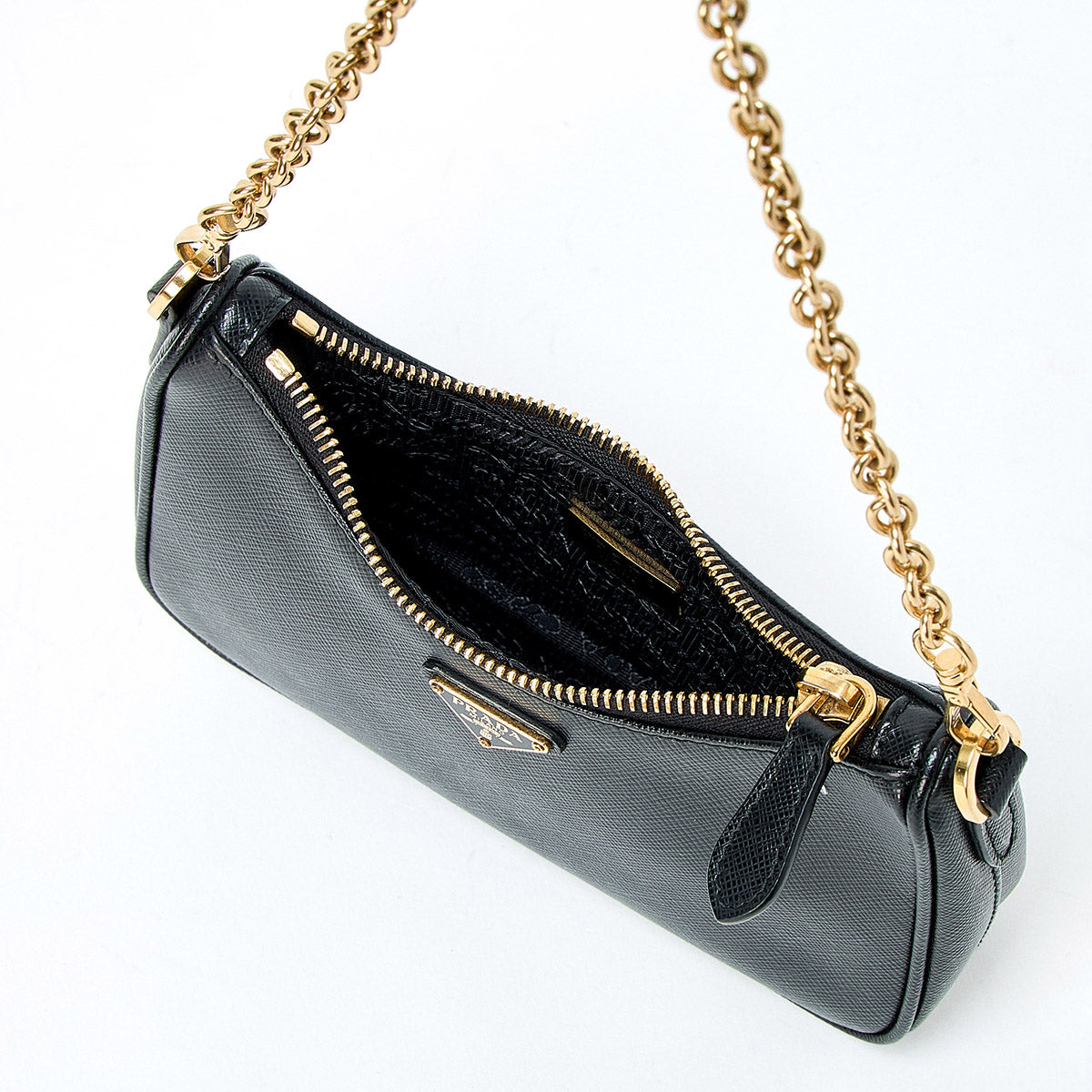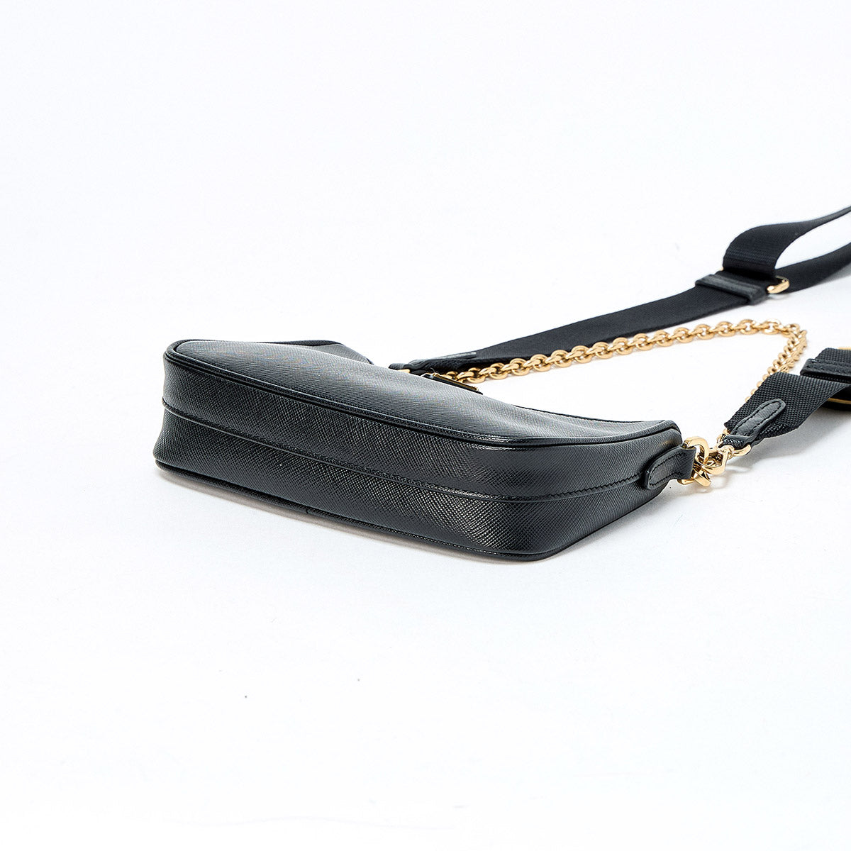 PRADA Triangle Shoulder Bag 1BH174 Black Gold Saffiano Auth