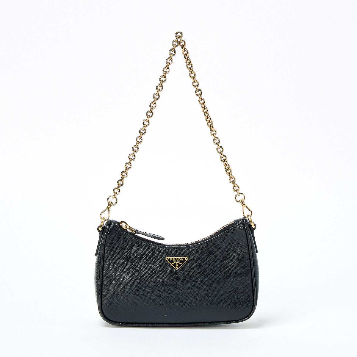 PRADA RE-NYLON Shoulder Bag Black Silver Tessuto Auth