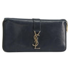 SAINT LAURENT Long Wallet Leather Black Gold Auth bs31468
