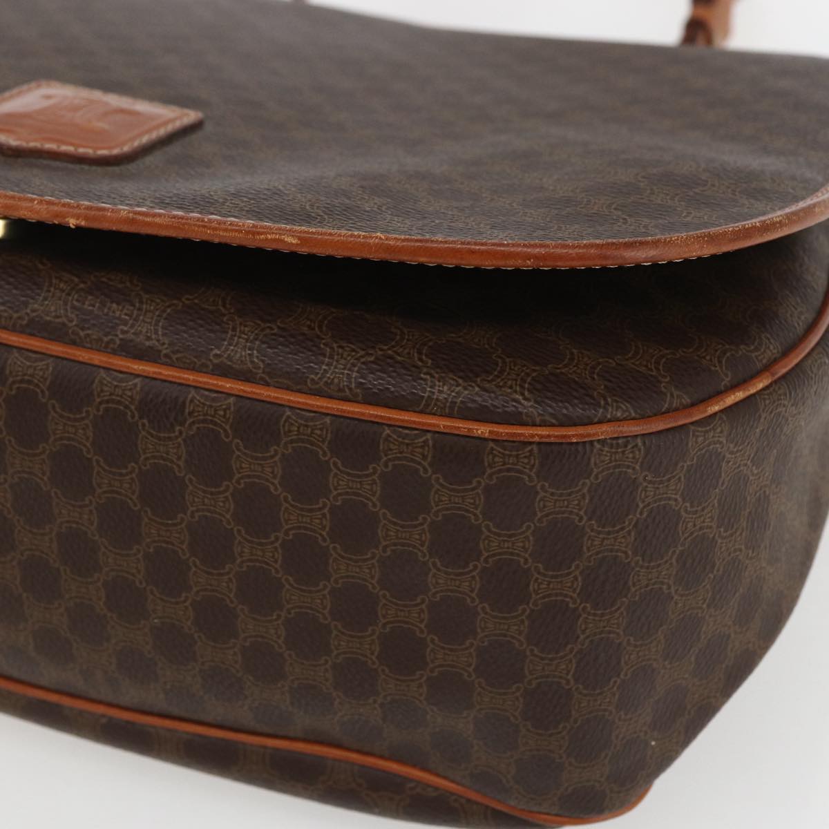 CELINE Macadam Canvas Shoulder Bag PVC Leather Brown Gold Auth mr1622