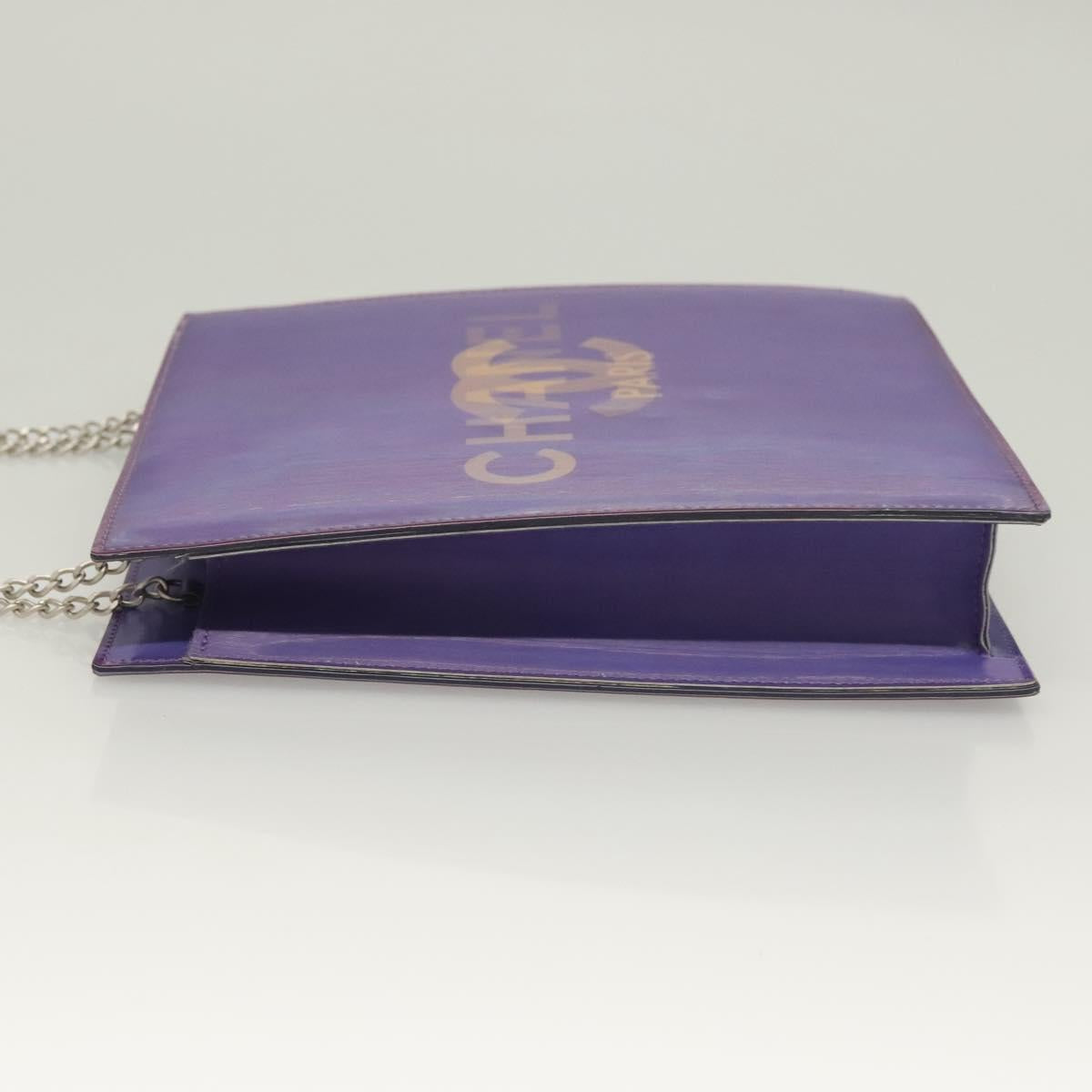 CHANEL Hologram Chain Shoulder Bag Vinyl Purple CC Auth 128454V