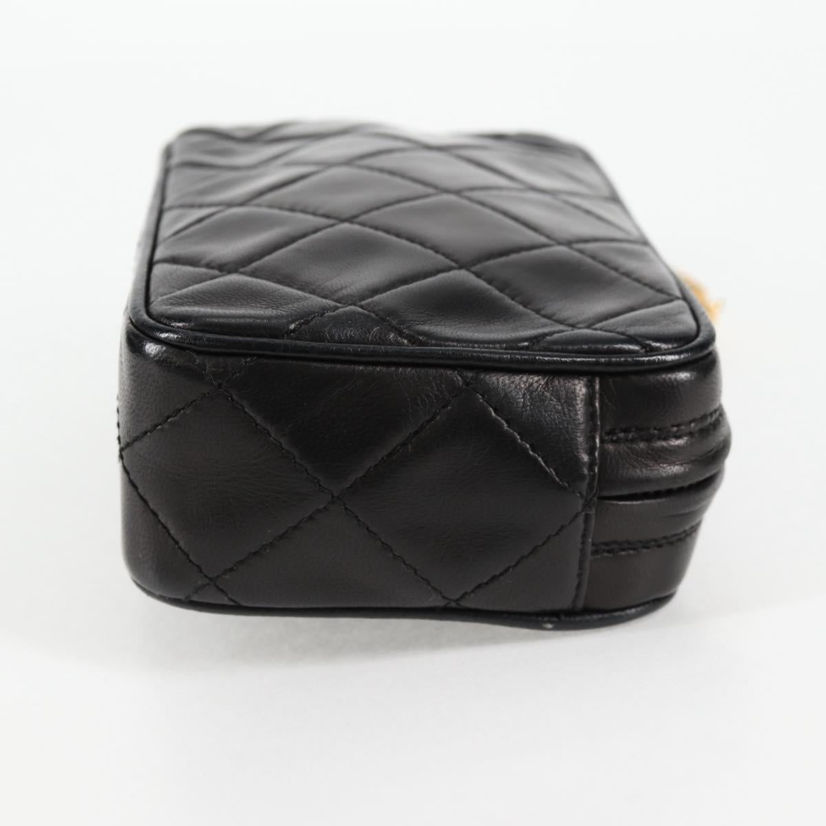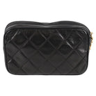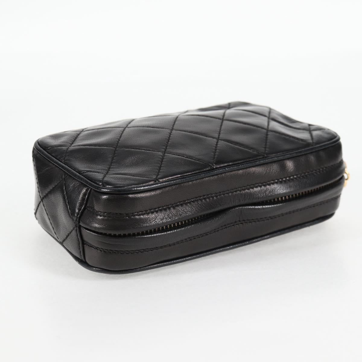 CHANEL Matelasse Chain Pouch Shoulder Bag Lamb Skin Black Gold CC Auth 125974V