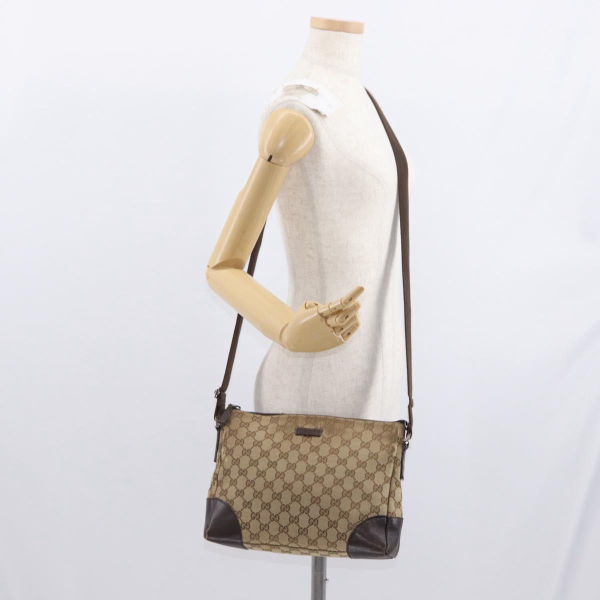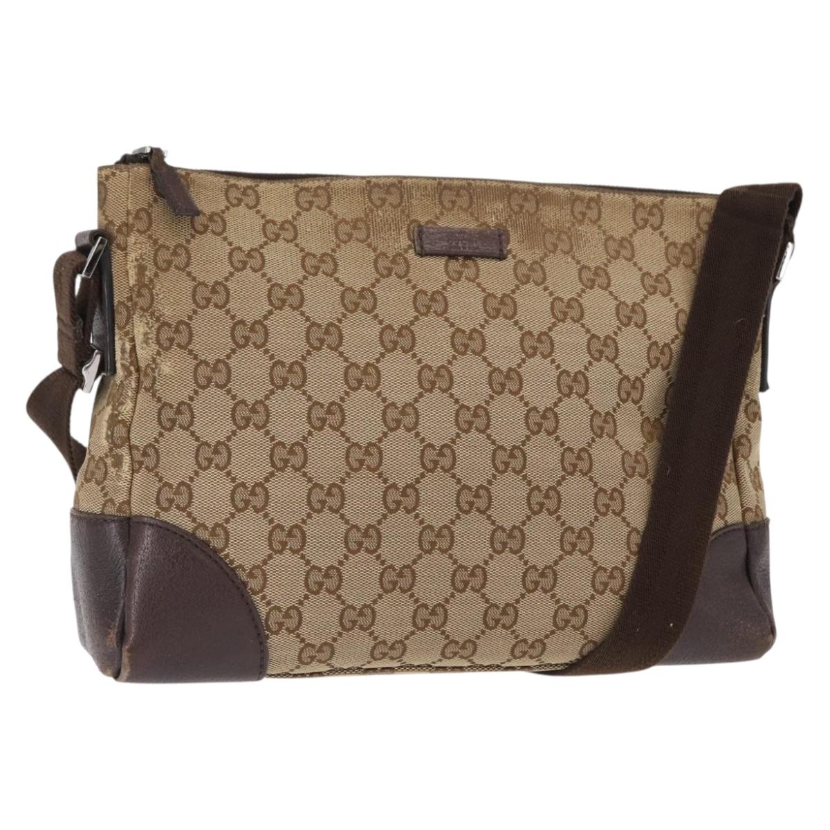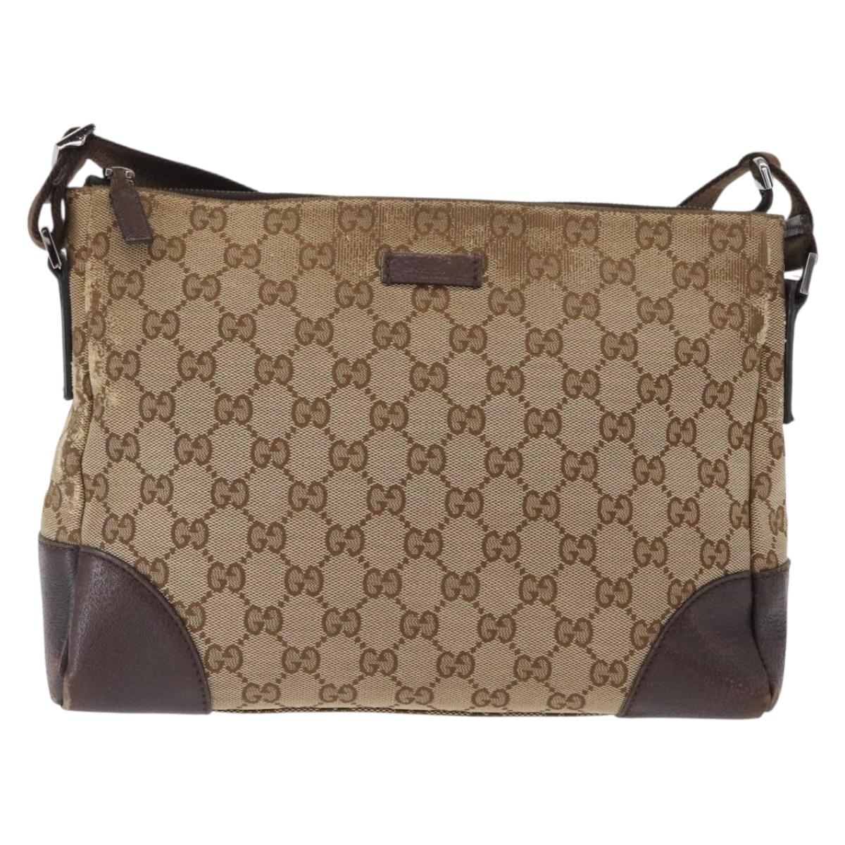 GUCCI GG Canvas Shoulder Bag Beige Silver 114273 Auth gh1525