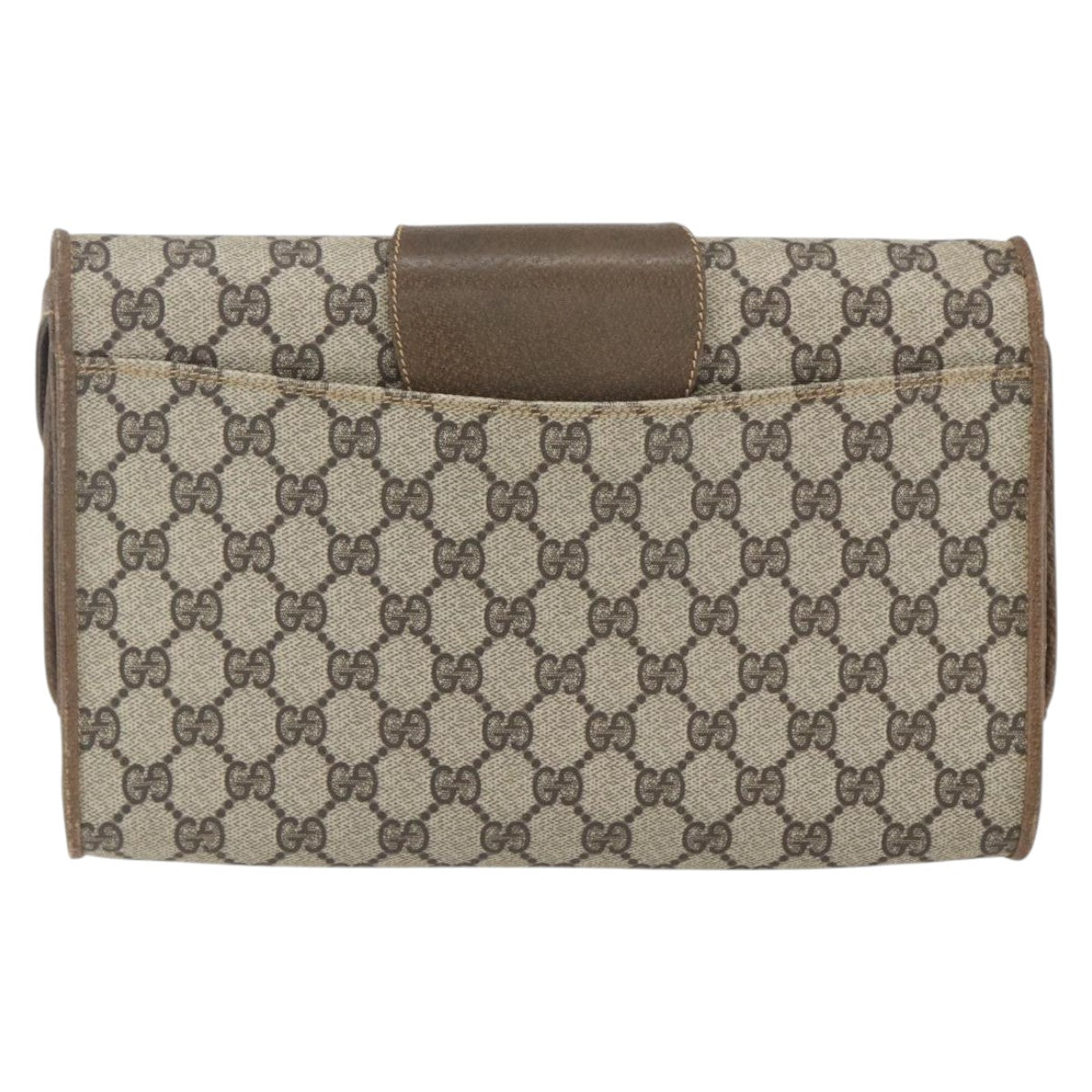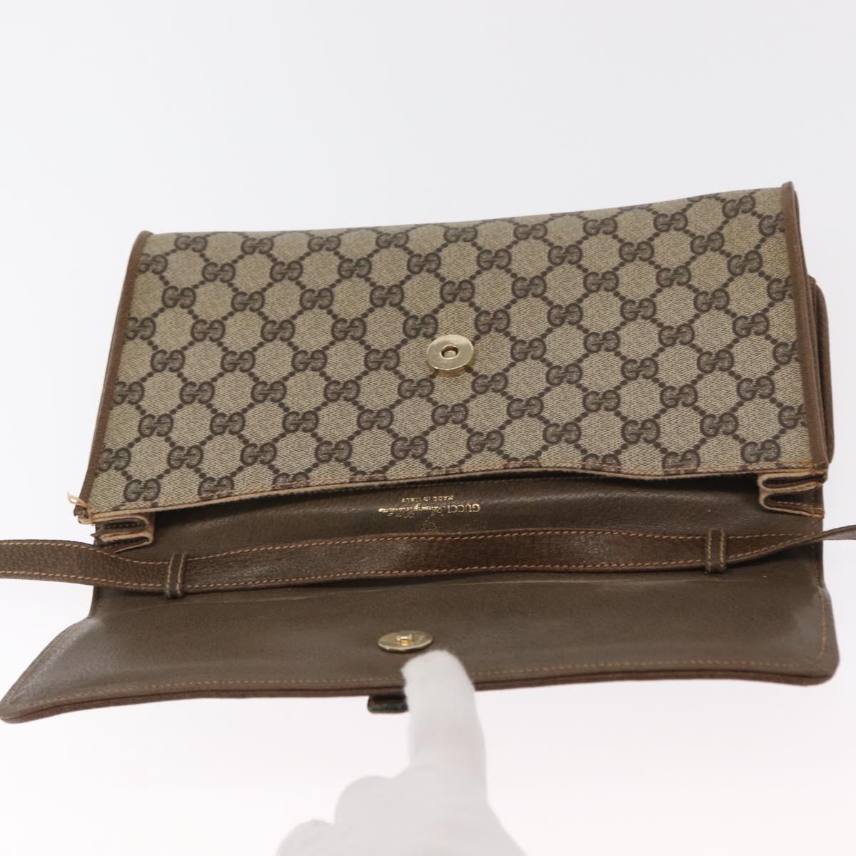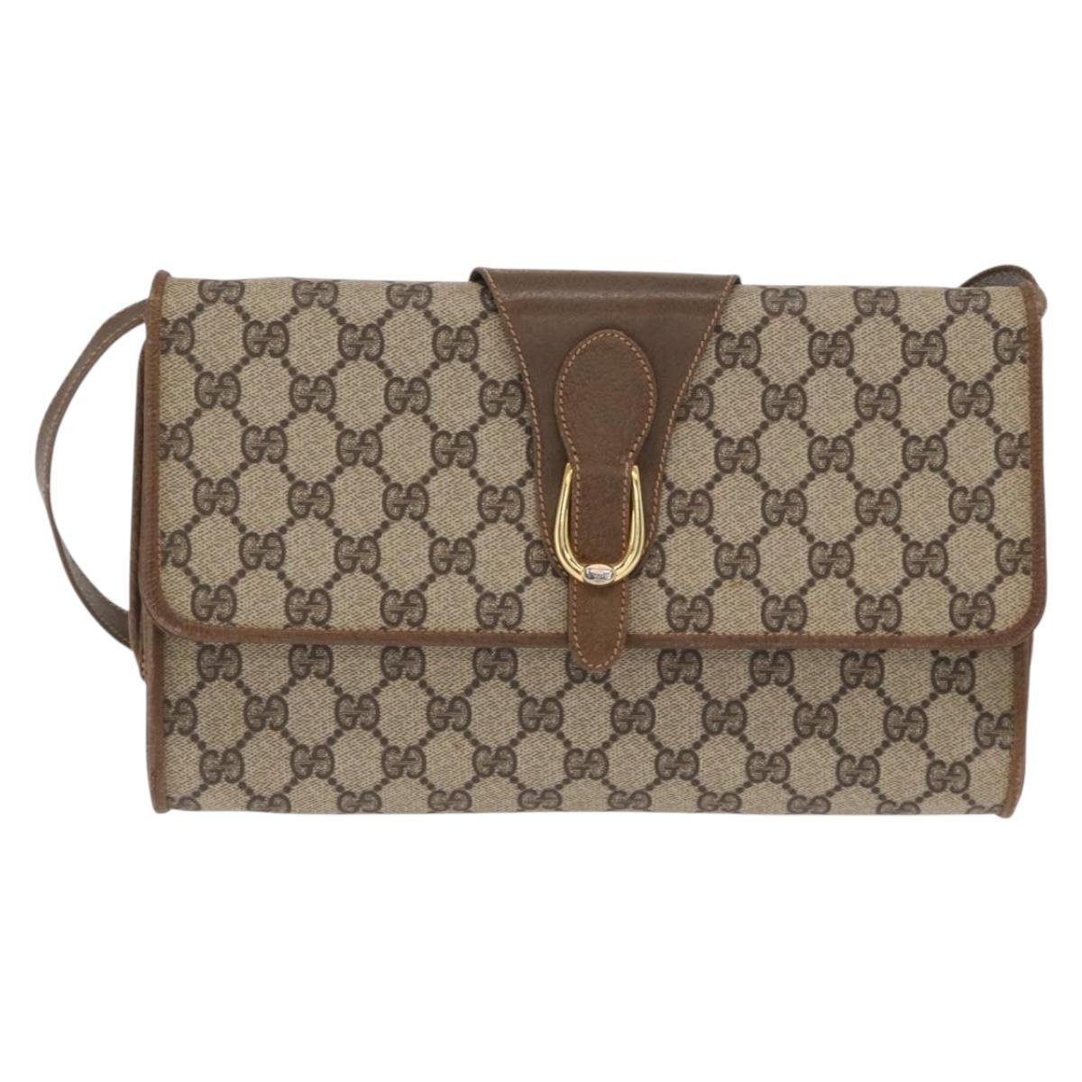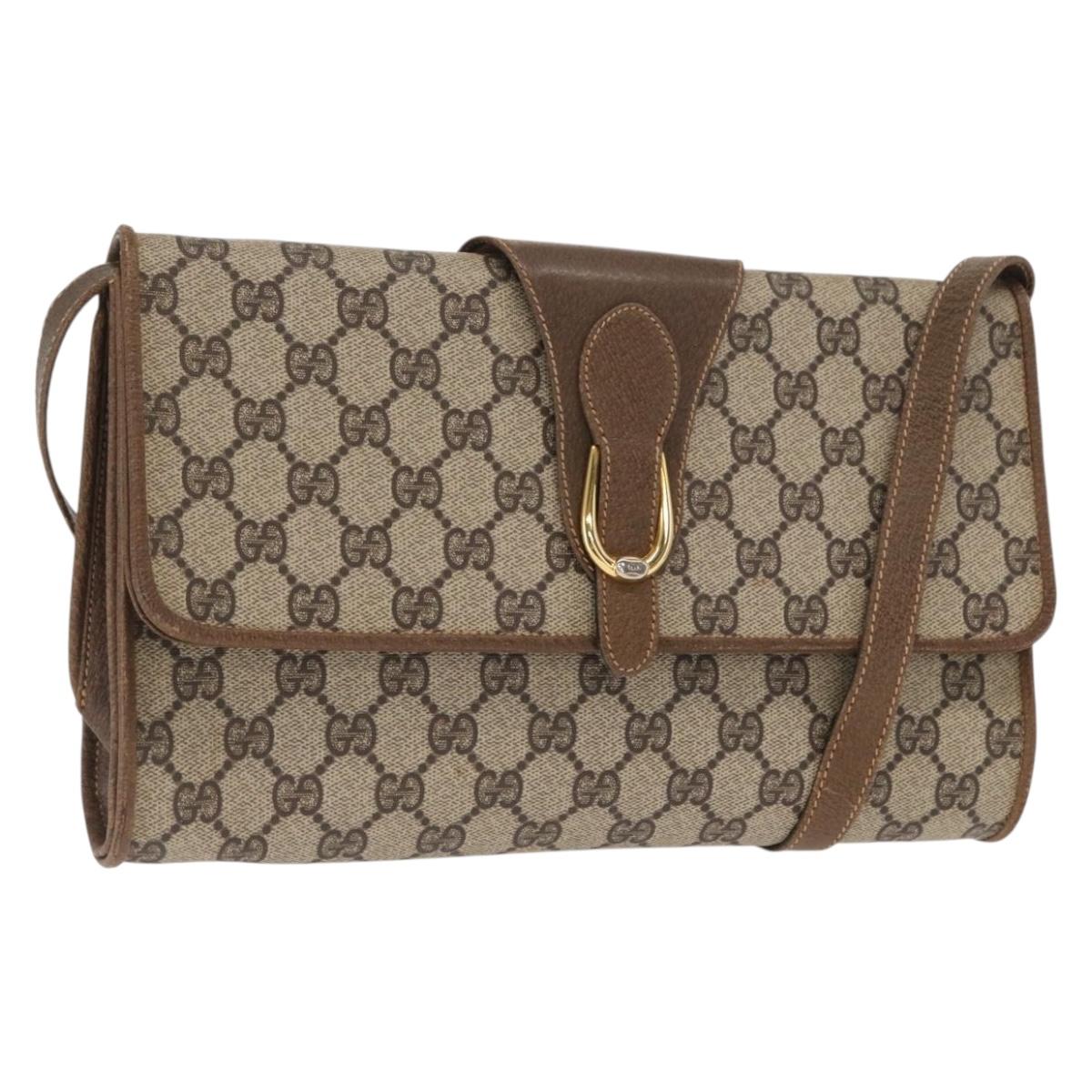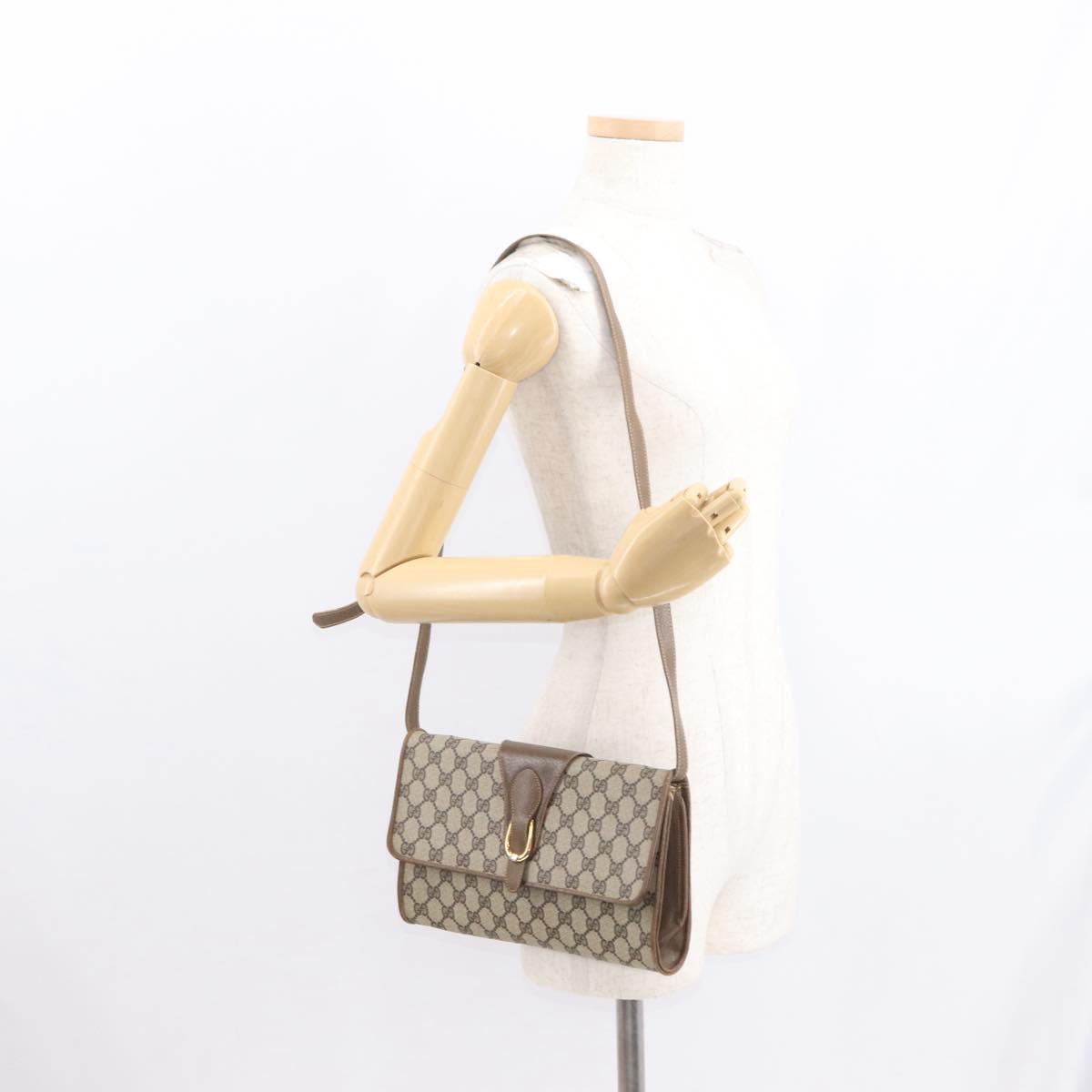 GUCCI GG Supreme Shoulder Bag PVC Beige Gold Auth 160558