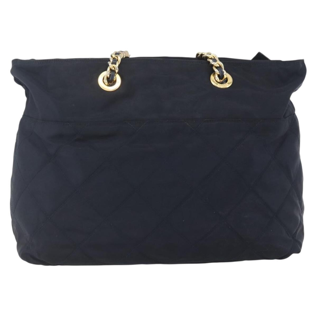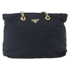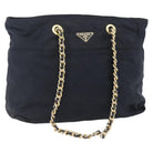 PRADA Chain Shoulder Bag Nylon Black Gold Auth bs31880