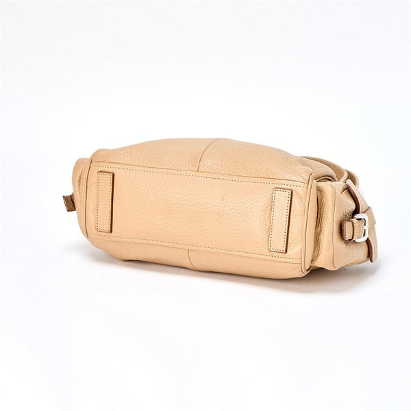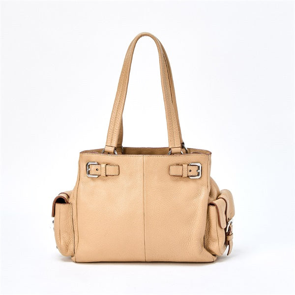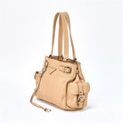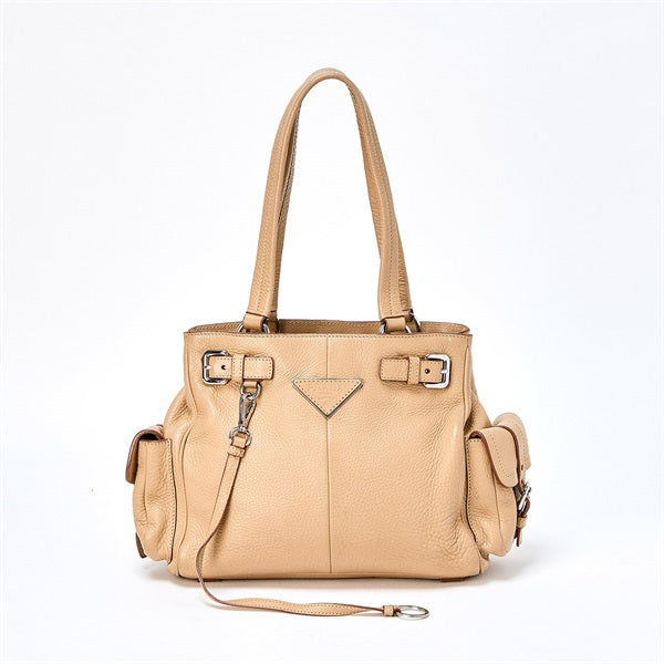 PRADA Triangle Shoulder Bag Camel Silver Leather Auth