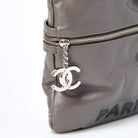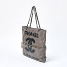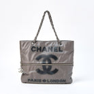 CHANEL COCO Mark Paris London Chain Tote 2008 Tote Bag Grey Silver Calf Skin Auth