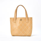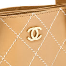 CHANEL Wild Stitch 2002 Tote Bag Beige Gold Calf Skin Auth