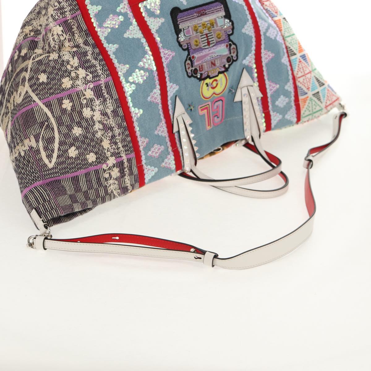 Christian Louboutin Tote Bag Canvas 2way Blue Silver Auth BA8017V