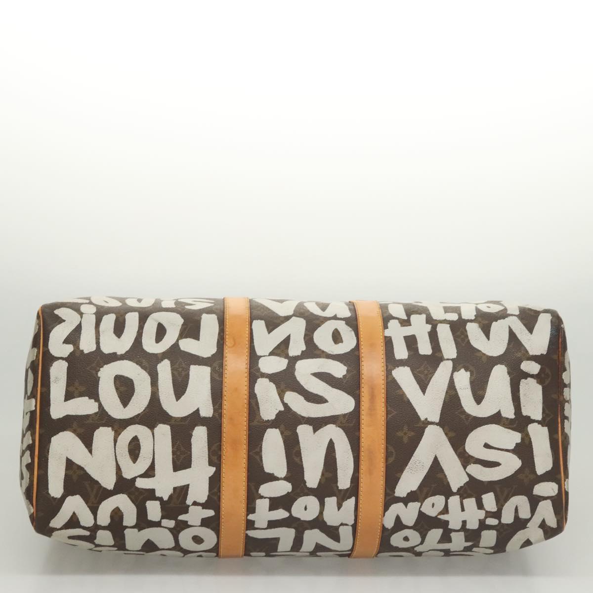 LOUIS VUITTON Monogram Graffiti Keepall 50 Boston Bag White M92197 Auth 124886V