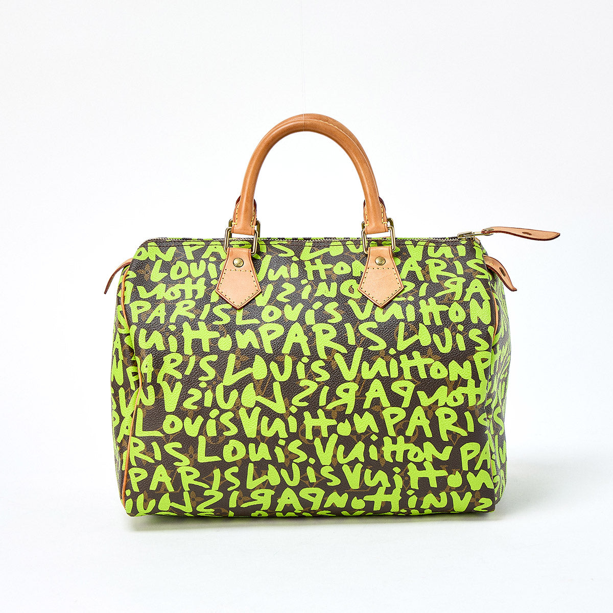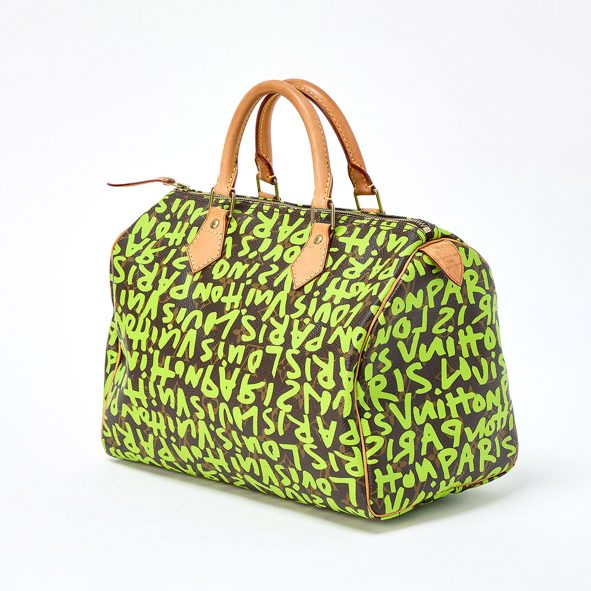 LOUIS VUITTON Monogram Graffiti Speedy 30 Boston Bag Green Brown Gold PVC Auth