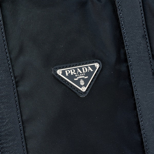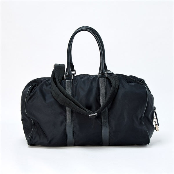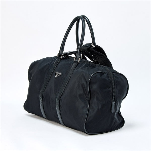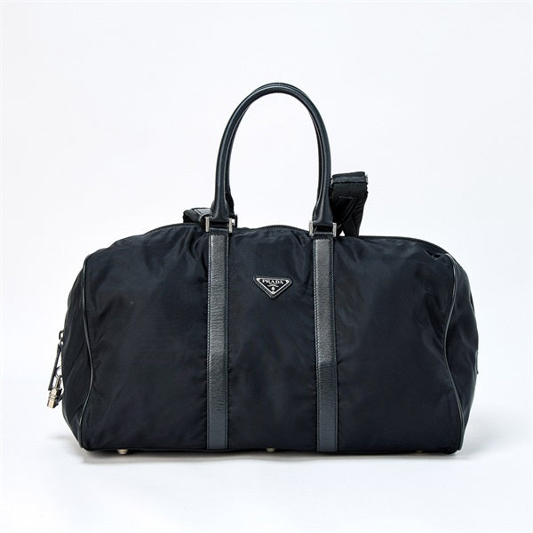 PRADA Triangle Boston Bag Black Silver Tessuto Auth