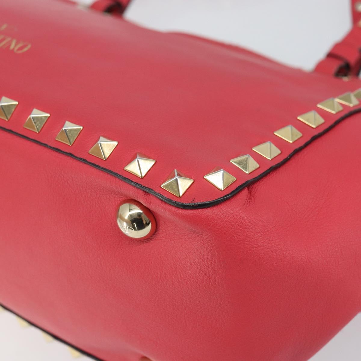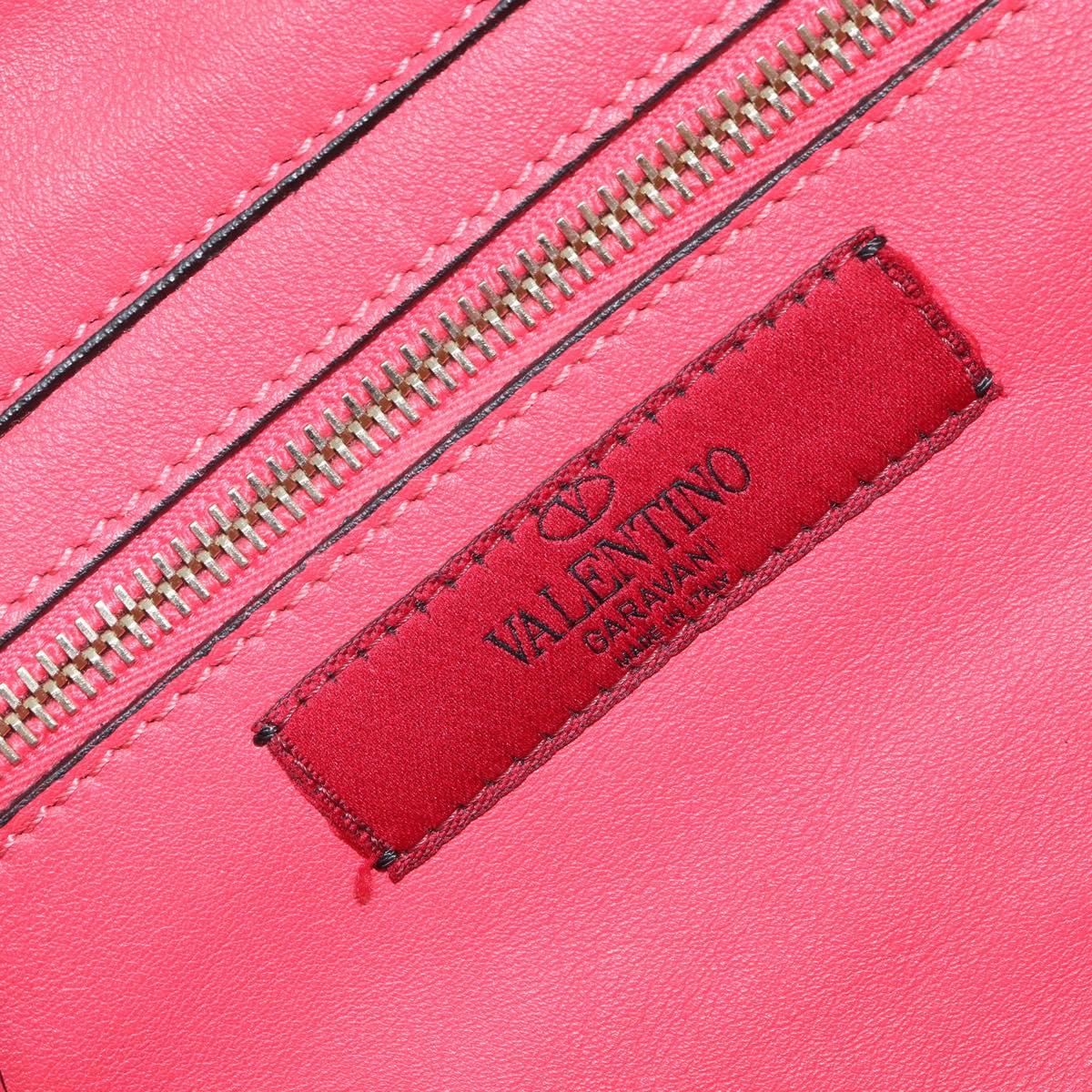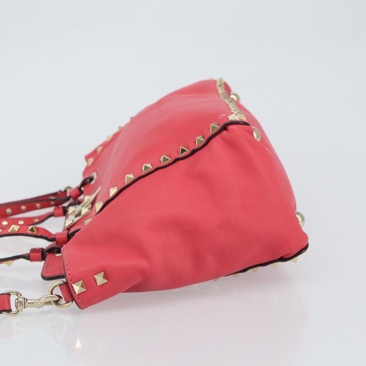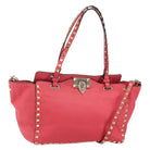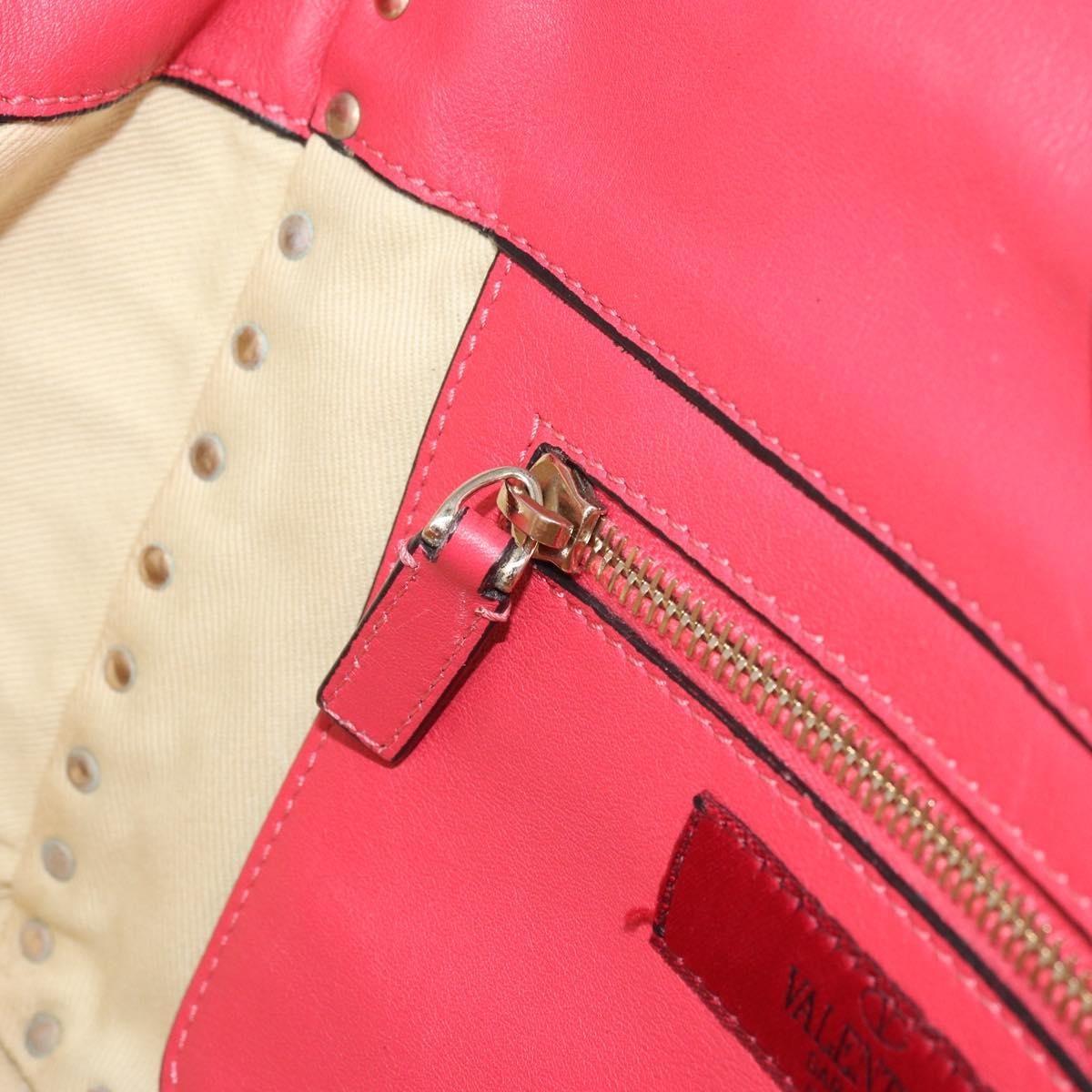 VALENTINO Rock Studs Hand Bag Leather 2way Pink Gold Auth BA9561