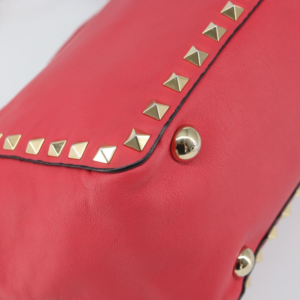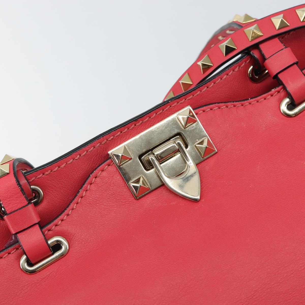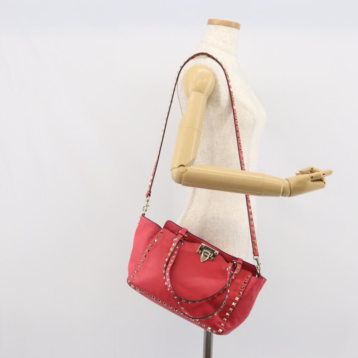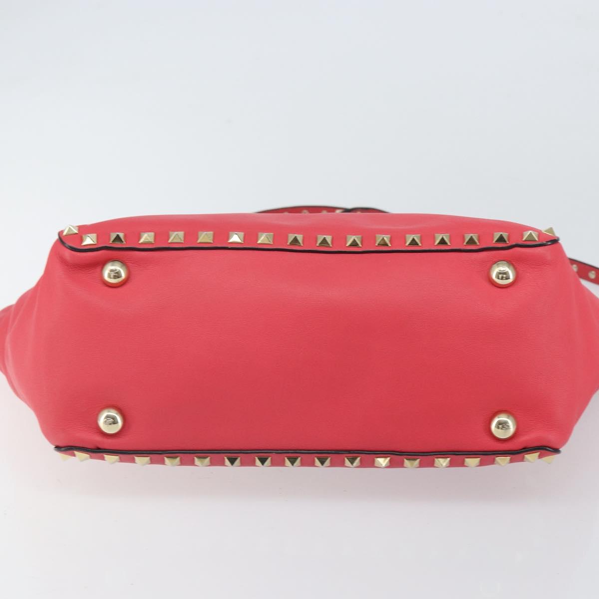 VALENTINO Rock Studs Hand Bag Leather 2way Pink Gold Auth BA9561