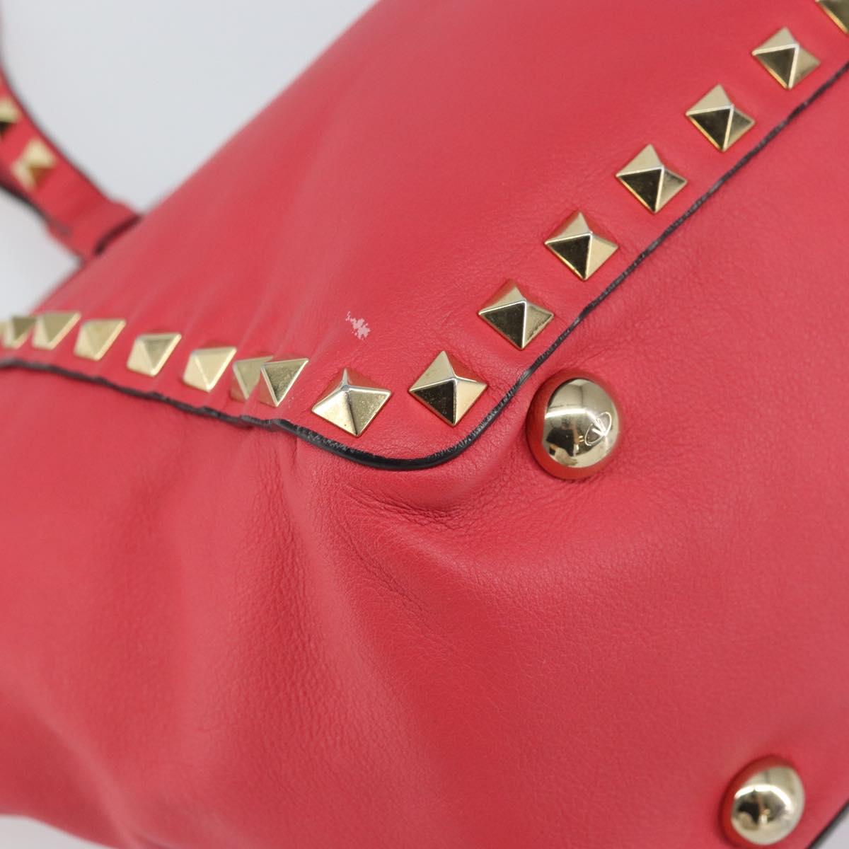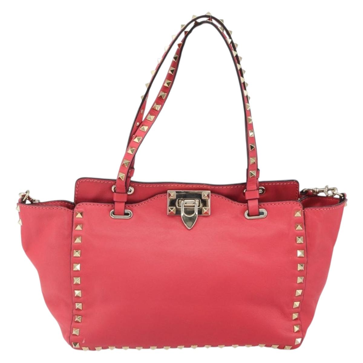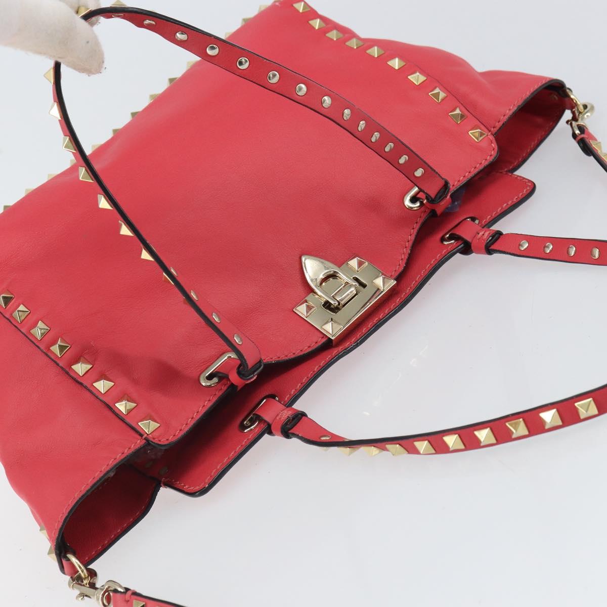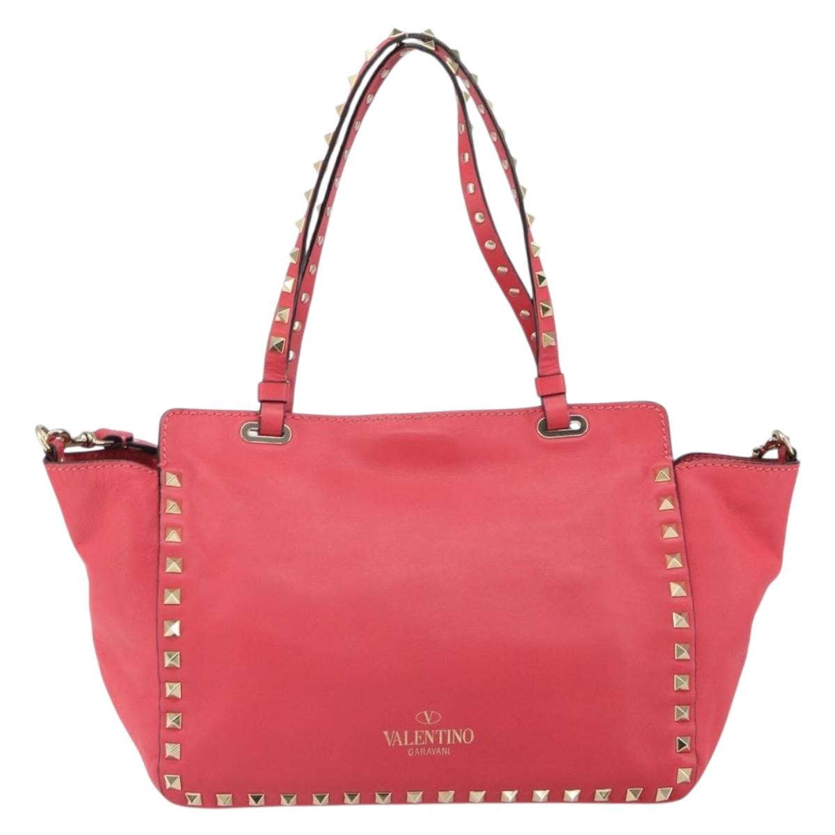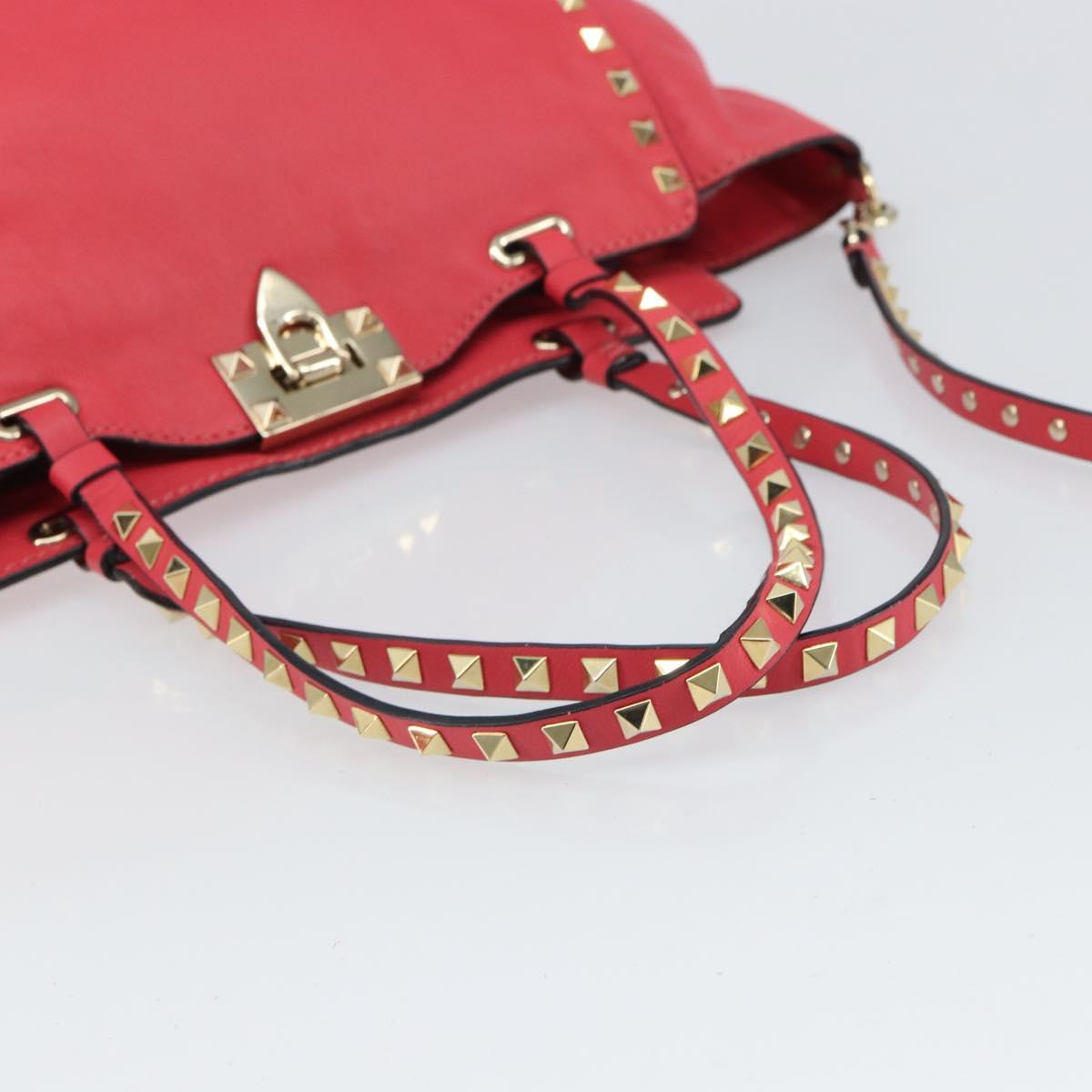 VALENTINO Rock Studs Hand Bag Leather 2way Pink Gold Auth BA9561