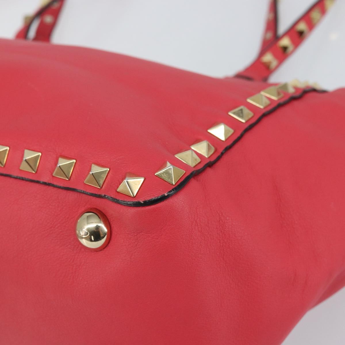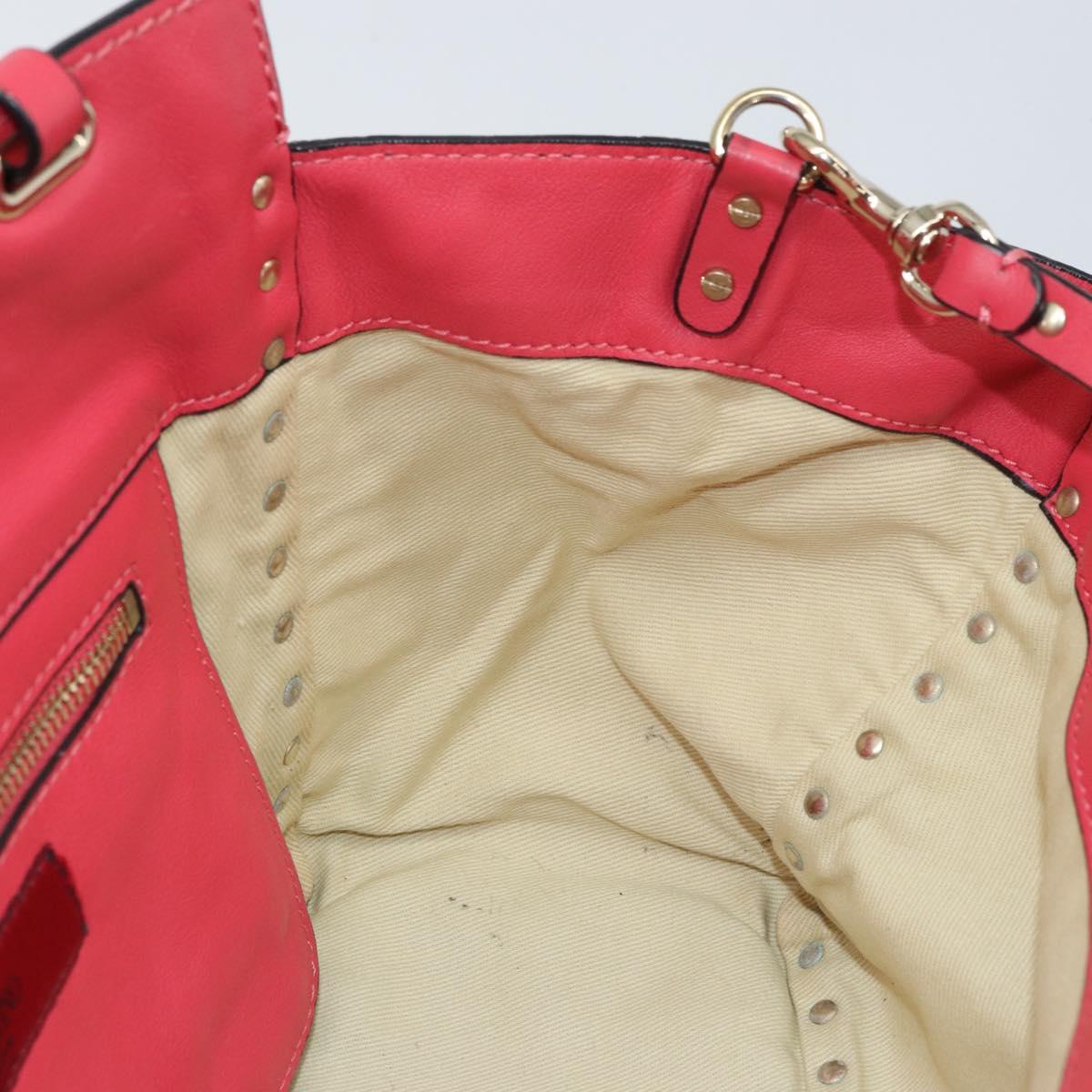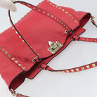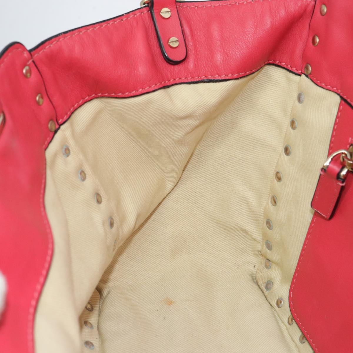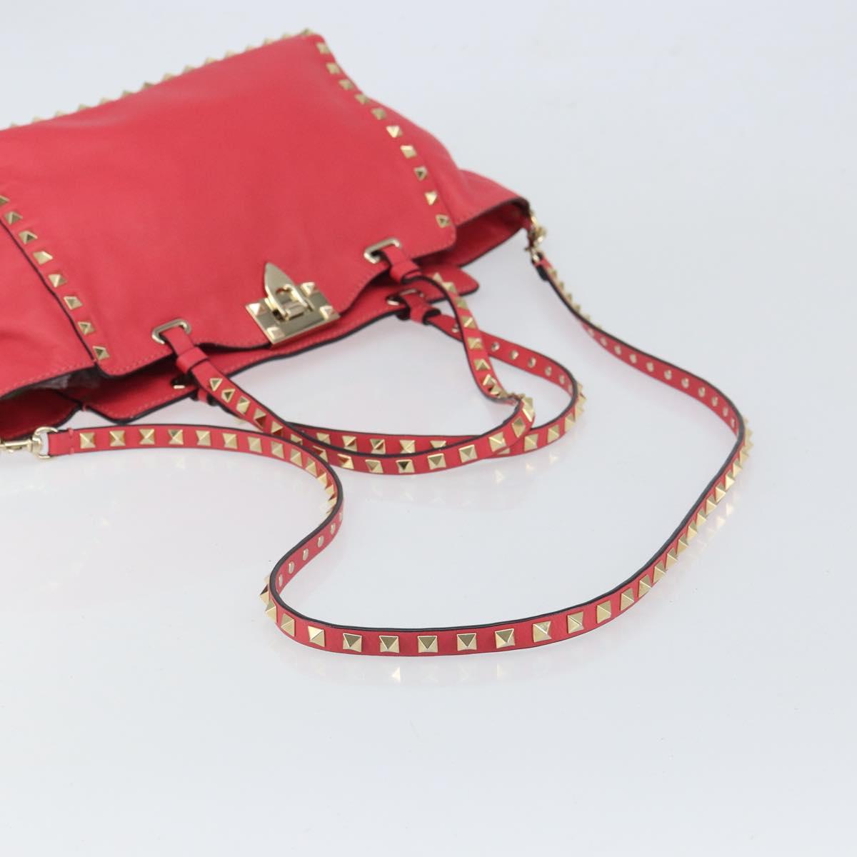 VALENTINO Rock Studs Hand Bag Leather 2way Pink Gold Auth BA9561